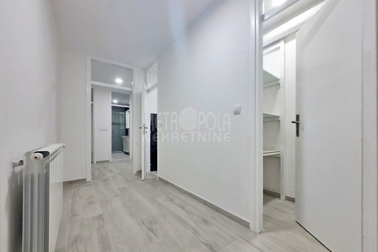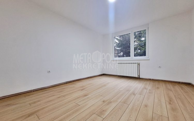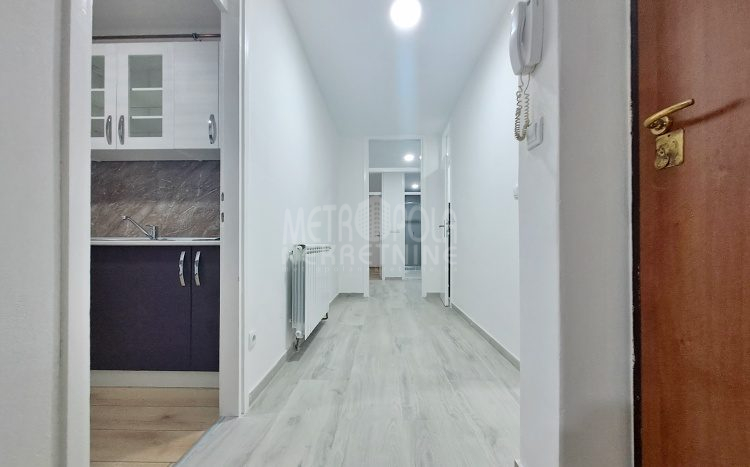 We rent a renovated and bright two bedroom apartment with an area of 83m2, located on the first floor of a residential building built in Edhema Eke Dzubura street, in the Pejton settlement. The apartment was completely renovated in 2024, and on that occasion the plumbing and electrical installations, carpentry, floor coverings and other interior beautification works were changed. It consists of a living room, a kitchen with a dining room, two bedrooms, a loggia, a bathroom, a toilet, a pantry, an anteroom and a storage room. Large window openings adorn the living room, providing plenty of natural light and a view of the greenery in front of the building, providing natural shade in the summer months.