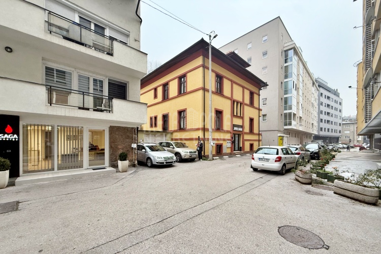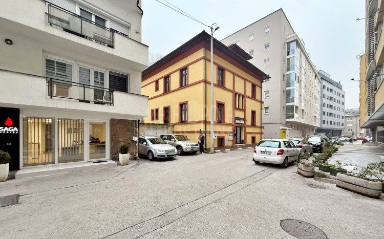 The apartment is located in the attic of a residential and commercial building, which corresponds to the height of the second floor. It is located in Skenderpašina Street, in the Skenderija settlement. It is a central part of the city that is filled with content necessary for an urban lifestyle.