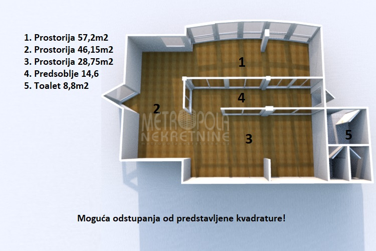 We are offering for rent a beautiful, bright and very functional office space, with an area of 155.5 m2, located on the second floor of a modern and high-quality newly built office building. The business building in which the space is located is located in Gradačačka Street, in the immediate vicinity of Bosmal City Center, and next to the thoroughfare used by public city traffic. The space is in extremely good condition, well lit, mainly thanks to the large portals, three-sided orientation and many window openings. The building in which it is located is completely of a business nature and filled with business entities. It is very well built, so we believe that it meets the required characteristics of even the most demanding users.