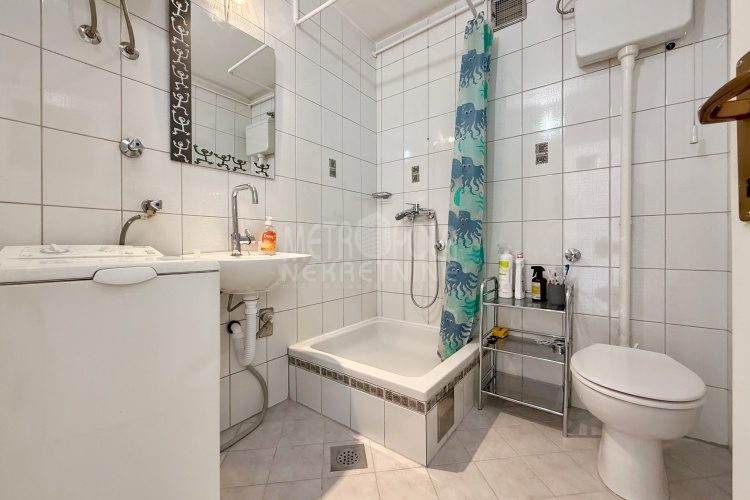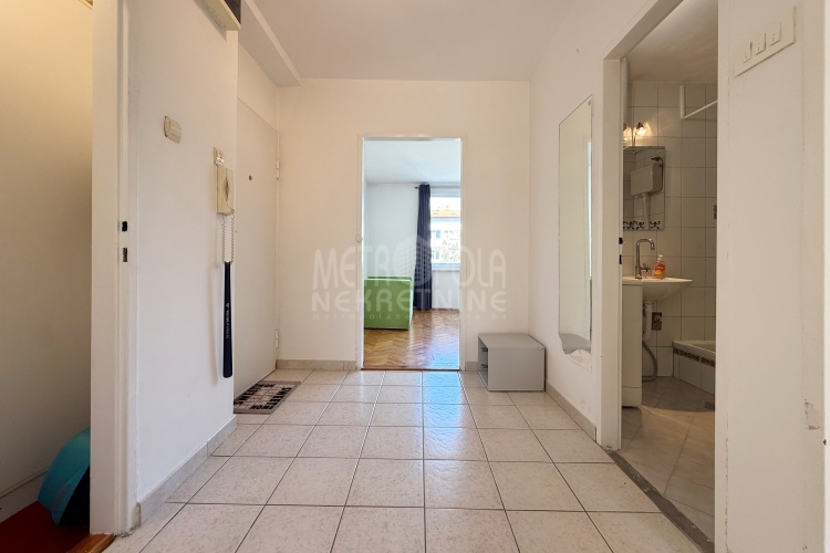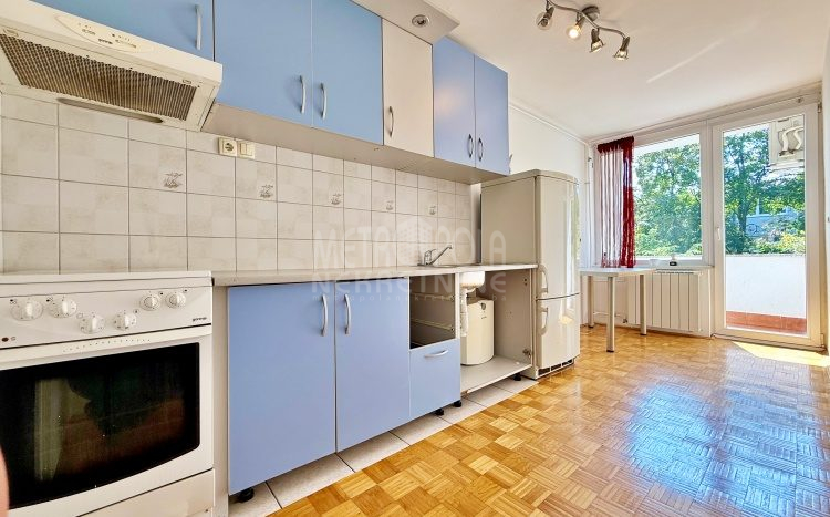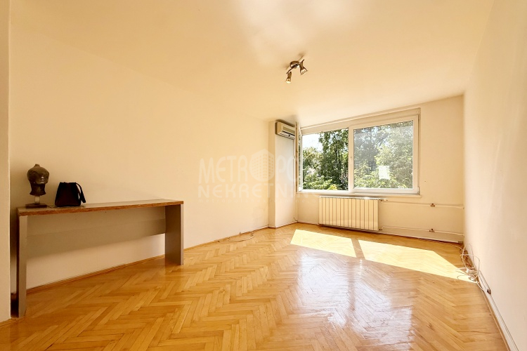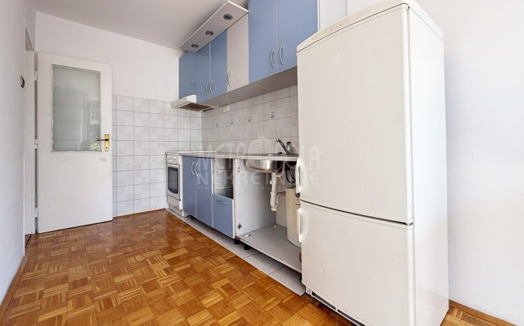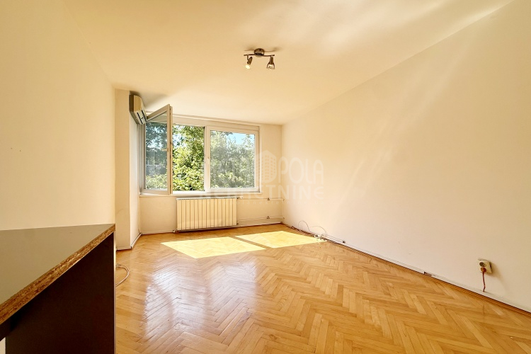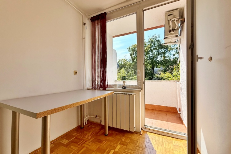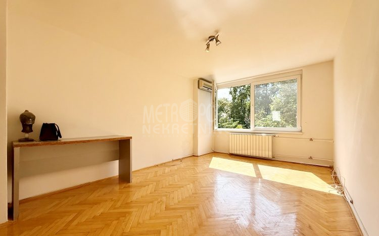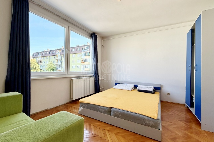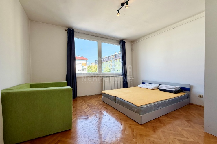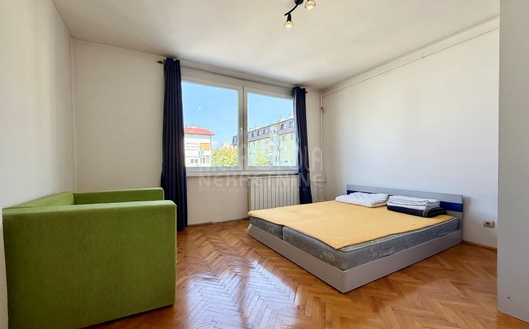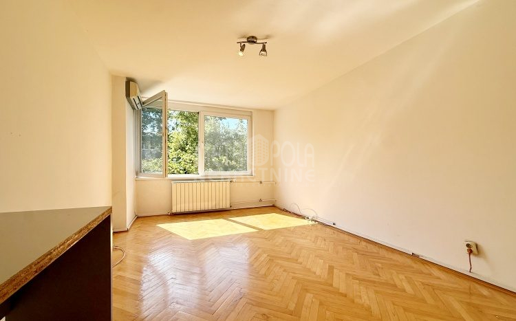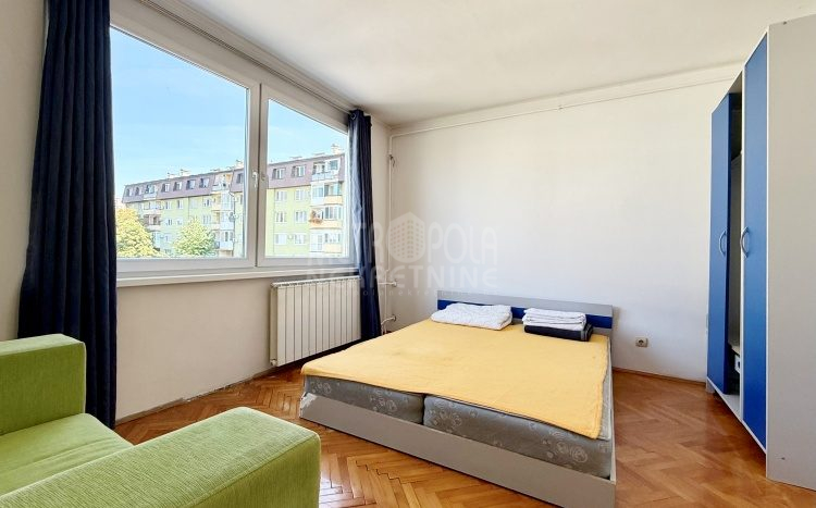We are offering for sale a one bedroom apartment of 54m2, located on the fourth floor of a residential building with a total of five floors. It is oriented on two sides (south – north), has large window openings, which, combined with the number of floors, makes it extremely bright and airy during most of the day. The apartment is in very good condition, last time renovated in 2016 when the exterior carpentry was changed and aluminum radiators were installed. Before that, in 2004, the plumbing in the kitchen and bathroom was changed, a security door was installed and other smaller corrections were made. The apartment has a very practical layout. It has a comfortable, south-oriented living room, kitchen and dining room with a balcony, from which there is a beautiful view of the green areas of the settlement, as well as a bedroom, bathroom, storage room and hallway. The building in which the apartment is located is extremely neat and well maintained. In front of the building there is a public parking area intended for tenants.