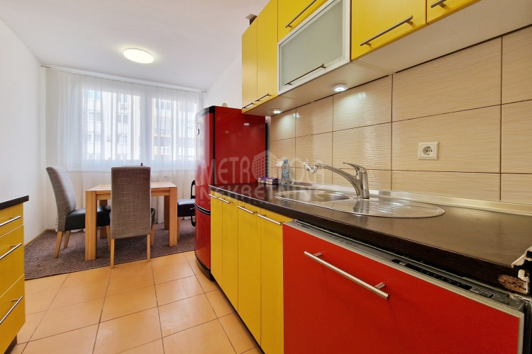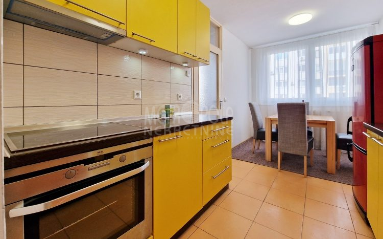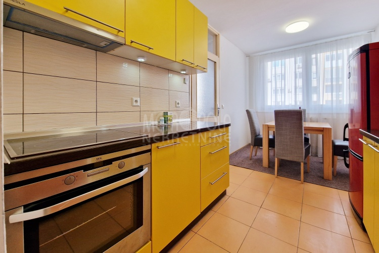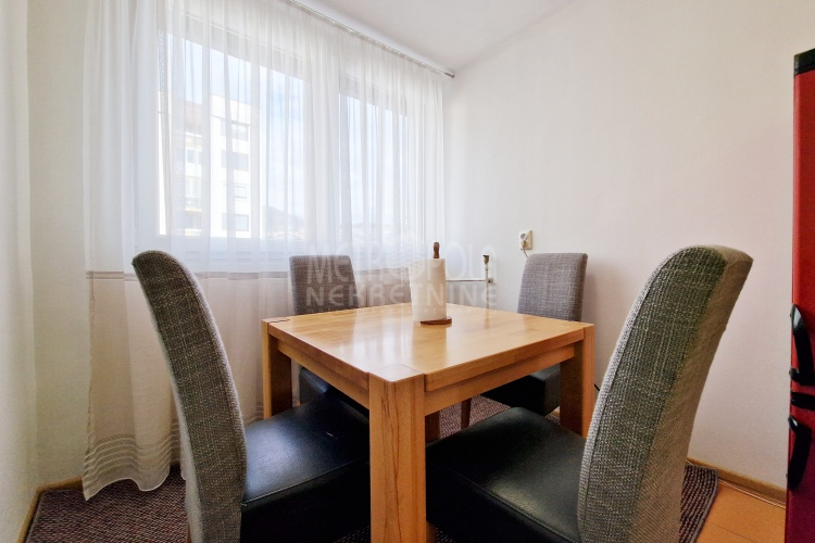 We are offering for rent a comfortable, furnished 2BDR apartment, total area of 64m2. The apartment is located on the fourth floor of a residential building built on Paromlinska Street, in the immediate vicinity of the Mercator shopping mall and the emergency services. The apartment consists of a living room with a large balcony, a kitchen and dining room, two bedrooms, a bathroom, a utility room and a hallway. It has two side orientation (south-north) and is very bright, airy and pleasant to stay in. It has been well maintained over the years of use and is very tidy. It has furniture and equipment necessary for everyday living. The building’s entrance hall is also well maintained, bright and airy, which contributes to the attractiveness of the apartment.