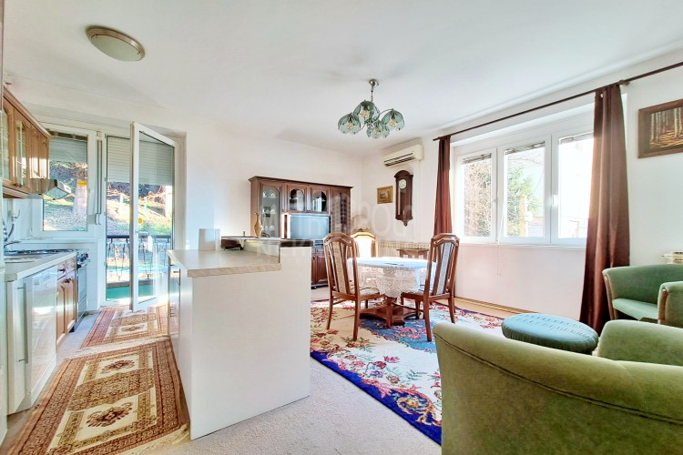 We rent a beautifully decorated and extremely bright two bedroom apartment, 68m2. The apartment is located on the second floor of a residential building built in Envera Colakovica Street, in the Mejtas neighborhood of Sarajevo. Due to the southwest orientation and large window openings, it is very bright and airy throughout the day. It consists of a living room with a kitchen and a dining room, two bedrooms, one of which has access to a nice balcony, a bathroom, a storage room, and another balcony that is accessed from the kitchen and the front entrance. During 2020, the apartment was renovated. There is an outdoor parking space in front of the building.