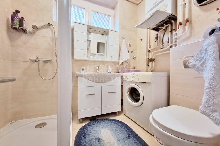 The apartment is located on the second floor of a residential building built in Enevera Colakovica Street, Mejtas settlement, Centar municipality. The building in which the apartment is located is positioned in such a way that it is completely isolated from the city noise, although it is only a few minutes’ easy walk from the city center. Going down Dalmatinska Street, in less than 3 minutes you will reach Marsala Tito Street, i.e. the Central Bank building, the first tram stop or the “Eternal Fire” monument.