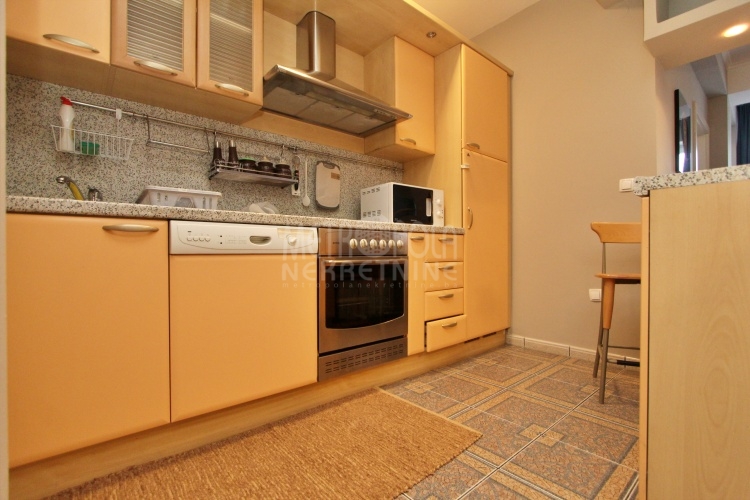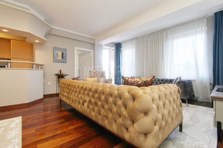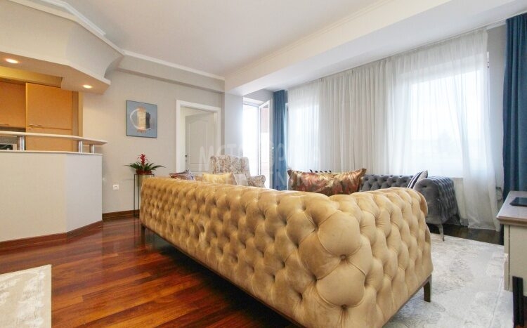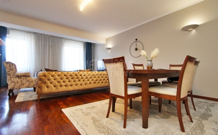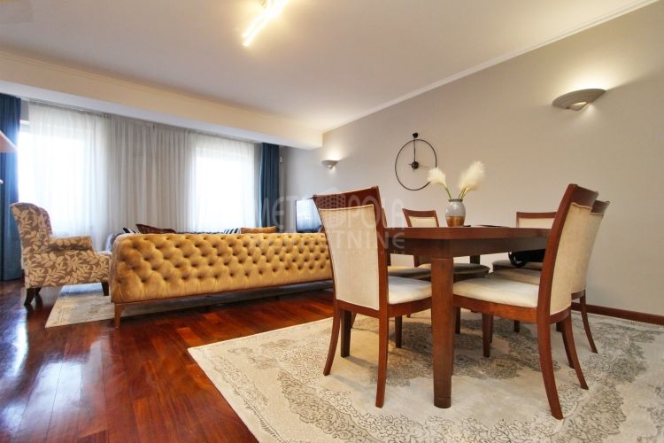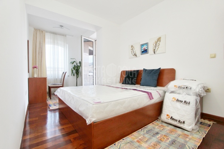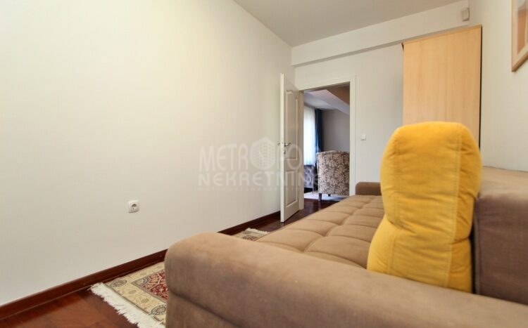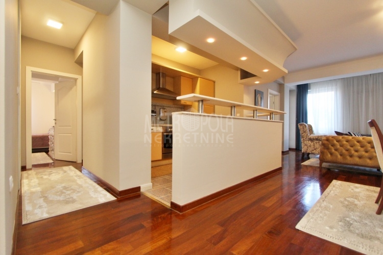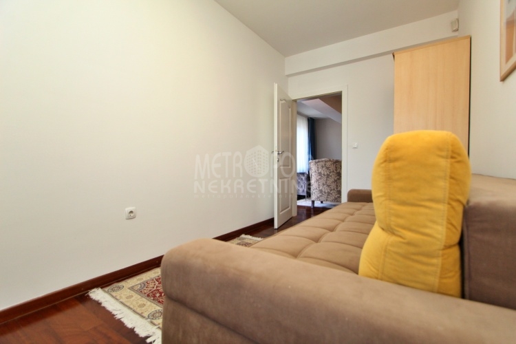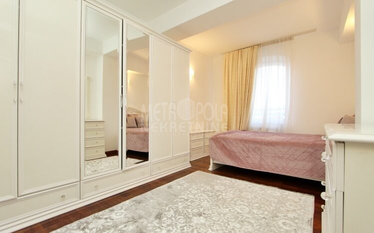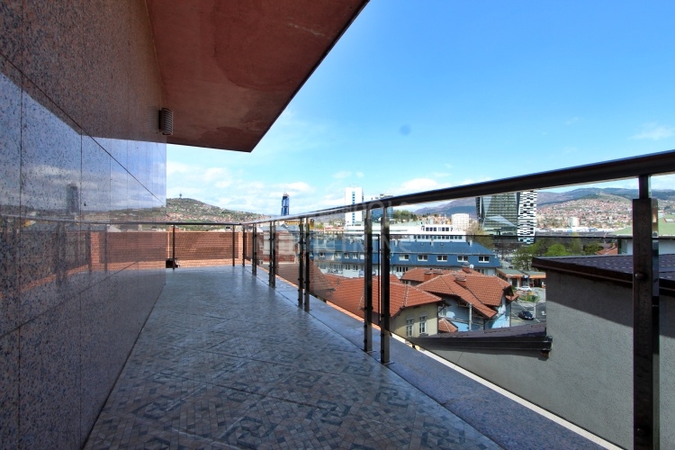 We rent a nicely equipped, comfortable and bright apartment with three bedrooms, masuring of 112m2. The apartment is located on the fourth floor of a newer residential and commercial building, built in Kovacici, the settlement between Grbavica and city center. It has extremely large window openings that make it airy and bright during most of the day, and a very spacious balcony with a beautiful view of the city. Also, it has a very nice layout, that consists of a living room with kitchen and dining area, three bedrooms, bathroom, toilet, hallway and balcony. The rental price includes one parking space.