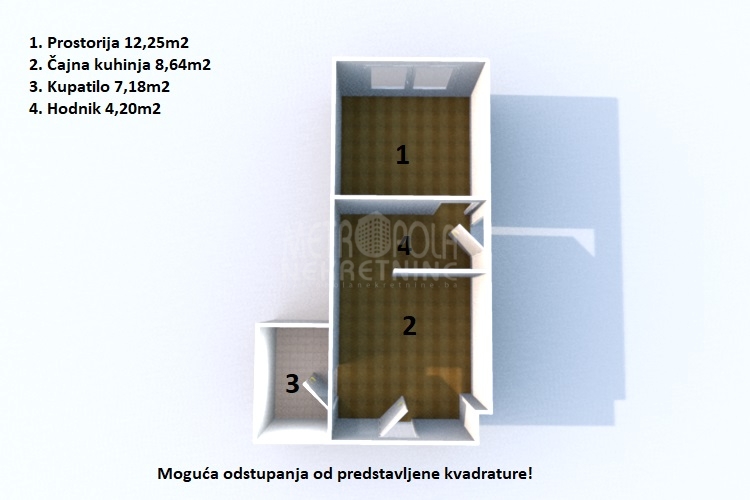We rent a modern office space of 33m2, located on the first floor of a residential and commercial building built along the main road, in the street Bulevar Mese Selimovica, Otoka. The space consists of a large north-facing room from which can be accessed to the kitchen and bathroom. It is very bright, airy and comfortable to stay. The building in which the space is located is covered by video surveillance in the entrance of the building, while the building itself is filled with various contents, which makes it very suitable for various activities. The space is currently furnished, but it is possible to rent it empty.