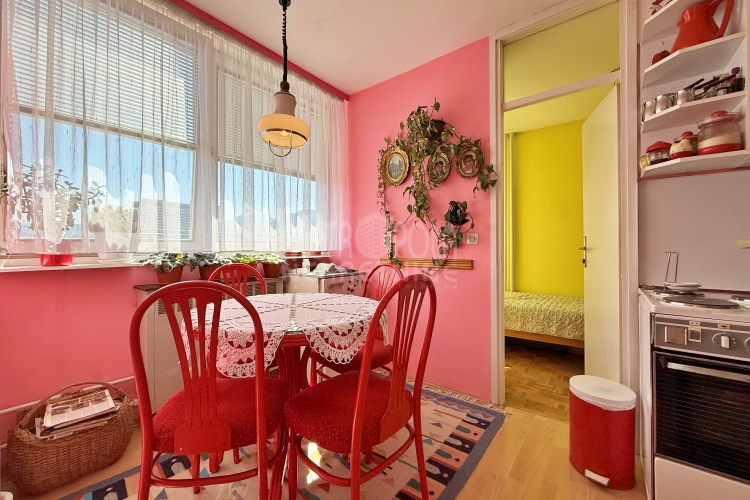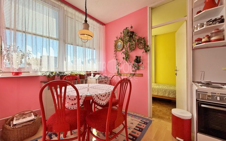We are offering for sale a 1BDR apartment of 50m2, located on the fourteenth floor of a residential building built in Marka Marulića Street, in the immediate vicinity of Malta Elementary School. It is oriented to the east and has a wonderful view of the city. It consists of a large living room, kitchen with dining room, one bedroom, bathroom and hallway. During 2023, exterior PVC joinery was installed in the living room, blind entrance doors and automatic fuses were installed. Previously, laminate was installed in the places where there used to be vinas tiles. The building in which the apartment is located has a total of eighteen floors and two elevators. It is regularly maintained and the haustor is tidy. There is a storage room in the attic that belongs to the apartment.