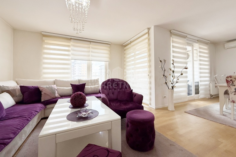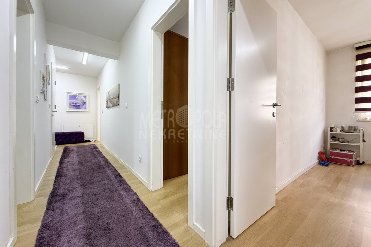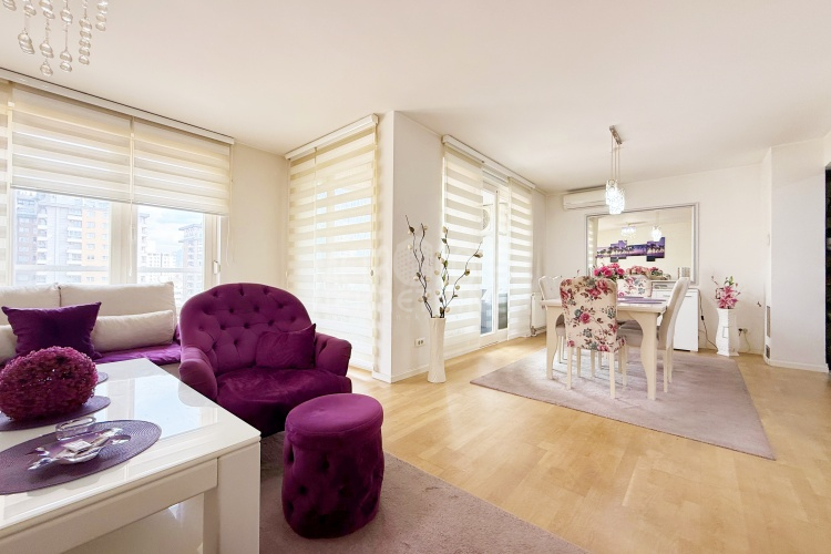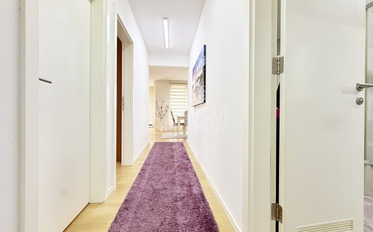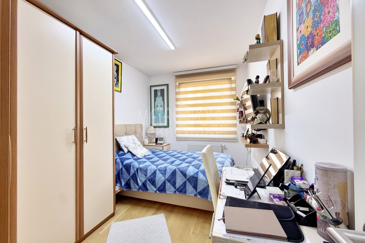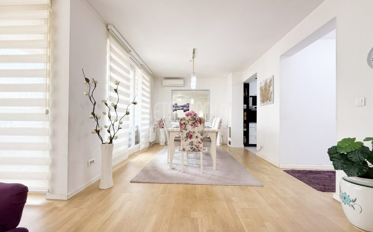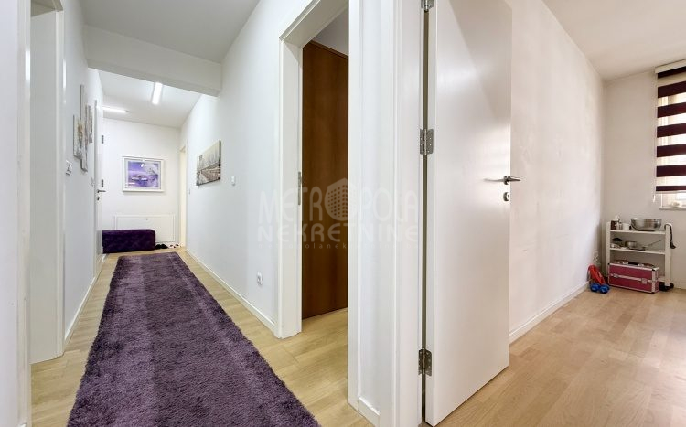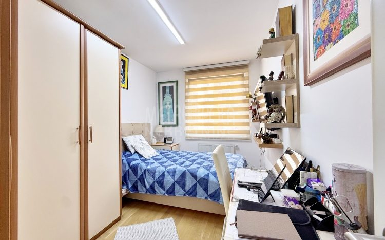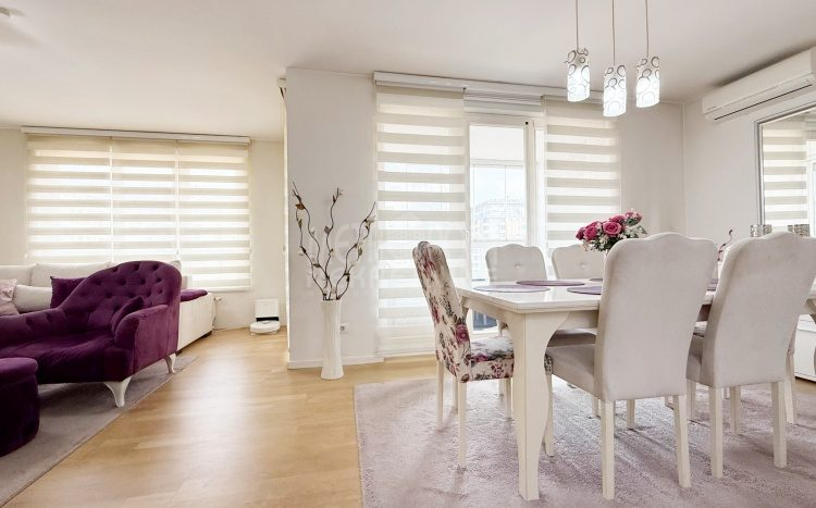 Prodajemo četverosoban stan površine 113,45m2, koji se nalazi na šestom spratu novoizgrađenog i vrlo reprezentativnog stambeno-poslovnog objekta Veneto. Stan ima potpunu istočnu orjentaciju, velike prozorske otvore i izuzetno funkcionalan raspored prostorija. Sastoji se od komfornog dnevnog boravka sa kuhinjom, trpezarijom i ustakljenom lođom, tri spavaće sobe od kojih jedna ima vlastito kupatilo i garderober, drugog zasebnog kupatila, toaleta, ostave i predsoblja sa hodnikom. Pored ovog izuzetno funkcionalnog rasporeda koji obiluje prostorom za skladištenje, u cijenu stana je uključena i ostava koja se nalazi na istom spratu, ima površinu 3,16m2 i poseban zk izvadak.