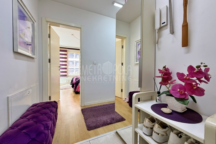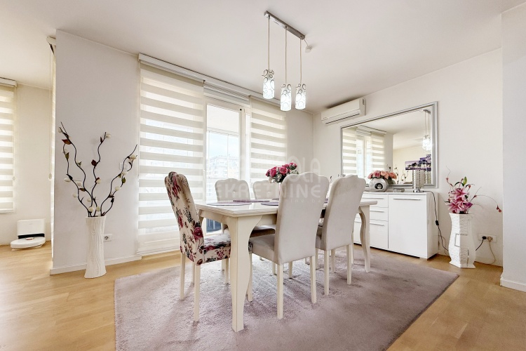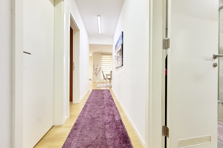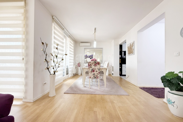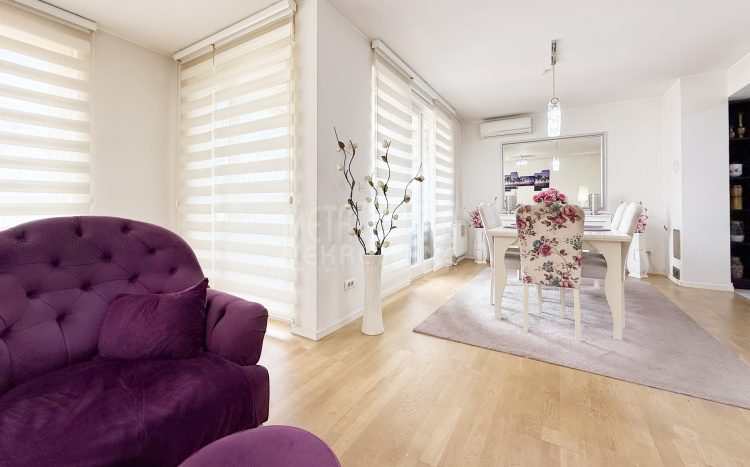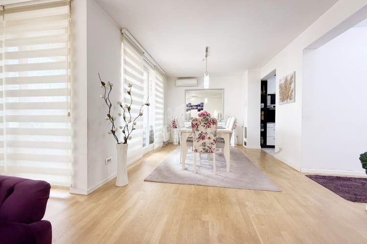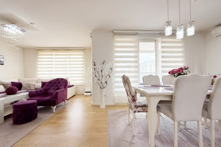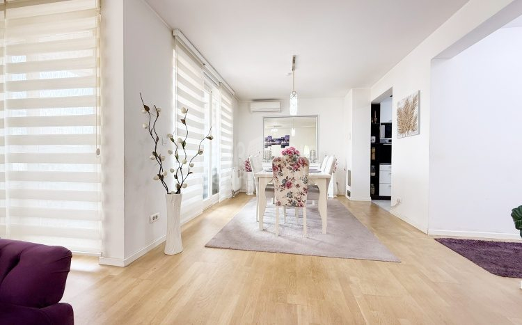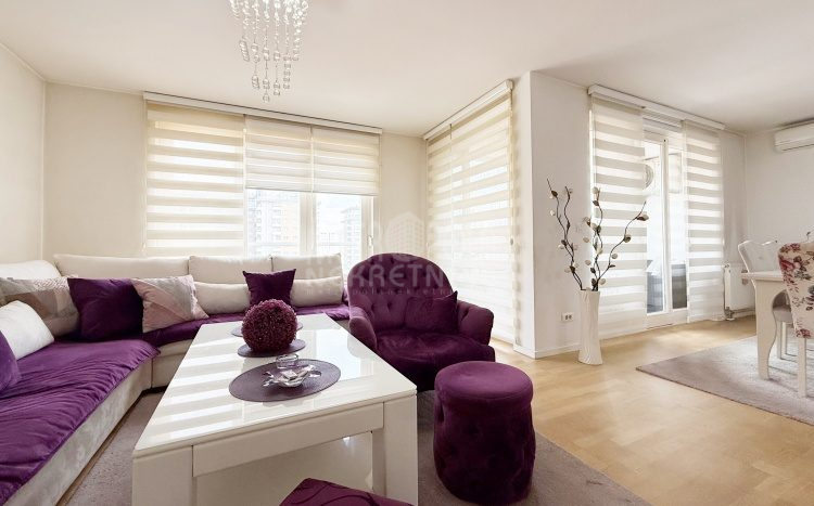 Prodajemo četverosoban stan površine 113,45m2, koji se nalazi na šestom spratu novoizgrađenog i vrlo reprezentativnog stambeno-poslovnog objekta Veneto. Stan ima potpunu istočnu orjentaciju, velike prozorske otvore i izuzetno funkcionalan raspored prostorija. Sastoji se od komfornog dnevnog boravka sa kuhinjom, trpezarijom i ustakljenom lođom, tri spavaće sobe od kojih jedna ima vlastito kupatilo i garderober, drugog zasebnog kupatila, toaleta, ostave i predsoblja sa hodnikom. Pored ovog izuzetno funkcionalnog rasporeda koji obiluje prostorom za skladištenje, u cijenu stana je uključena i ostava koja se nalazi na istom spratu, ima površinu 3,16m2 i poseban zk izvadak.