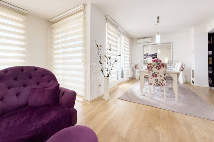 Centralno grijanje iz gradske toplane. Alu radijatori sa kalorimetrima. Drvena unutrašnja i vanjska stolarija. Parket i keramičke pločice na podovima. Klima uređaj. Blinda ulazna vrata. Interfon. Lift. Ostava.