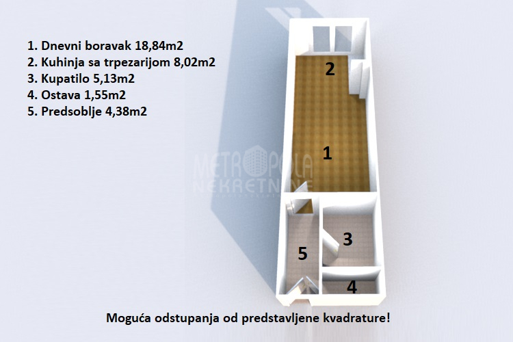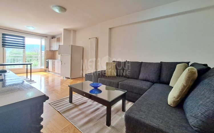 Iznajmljujemo komfornu, opremljenu i urednu garsonjeru, površine 37,62m2, koja se nalazi na trećem spratu stambenog objekta novije gradnje. Sastoji se od dnevnog boravka, kuhinje i trpezarije, kupatila, komforne ostave i predsoblja u kojem se nalazi izuzetno veliki plakar. Garsonjera je jugozapadno orjentisana, zbog čega je osunčana, prozračna i vrlo dobro osvijetljena prirodnom svjetlošću tokom cijelog dana. Posebno je krasi lijep otvoren pogled prema naselju Ilidža.