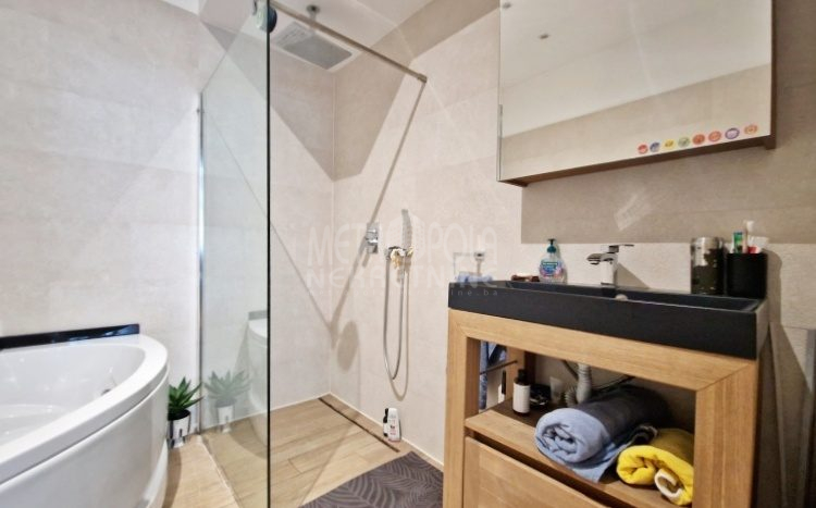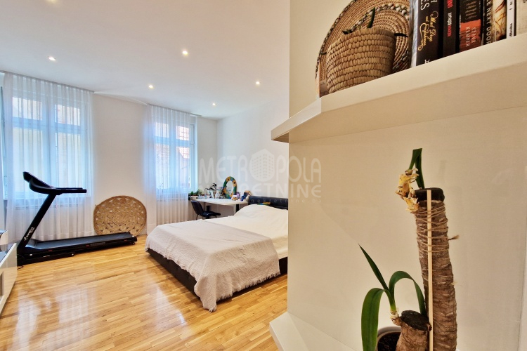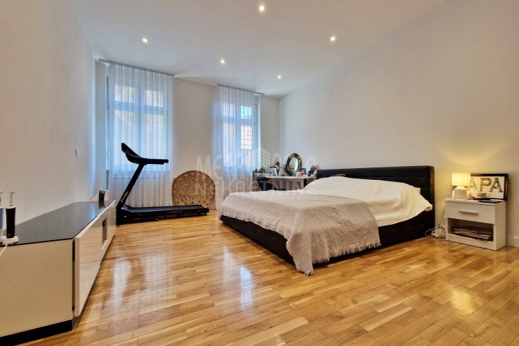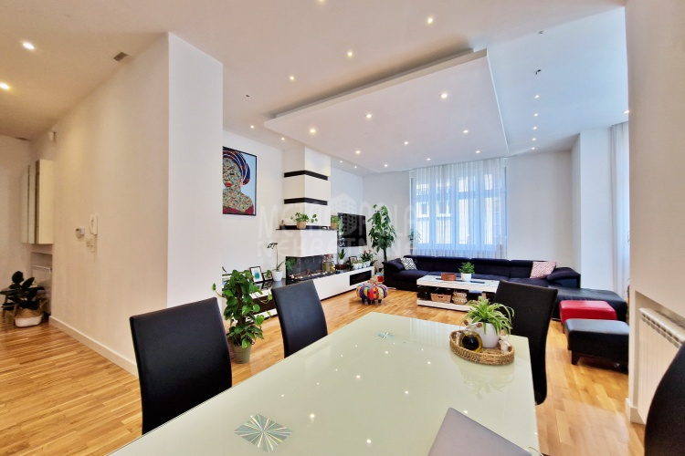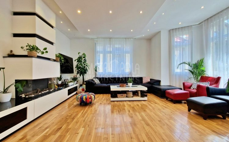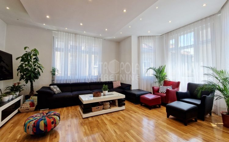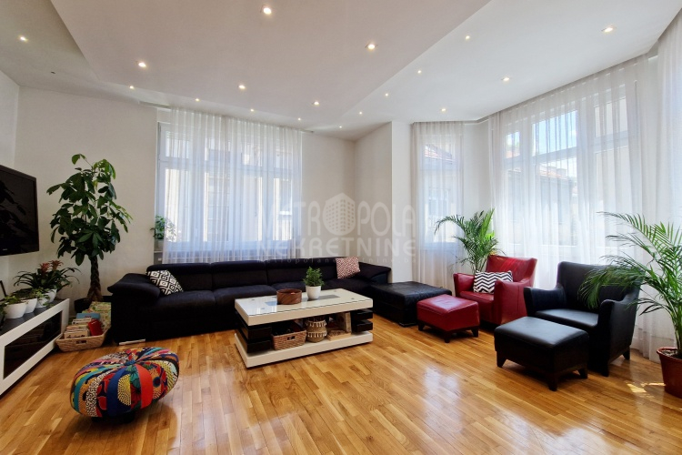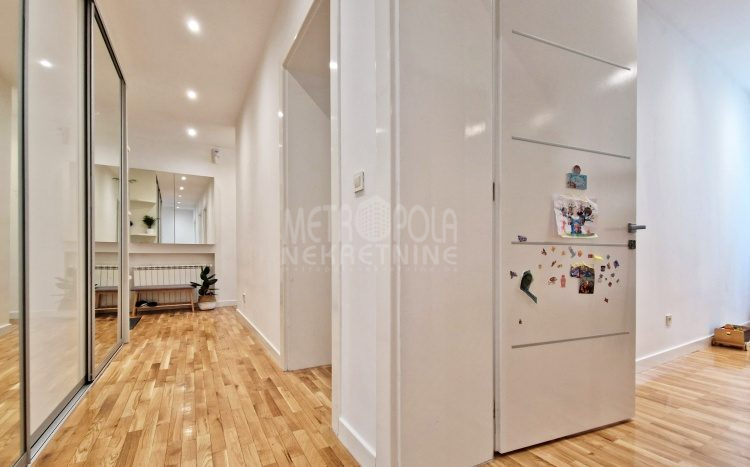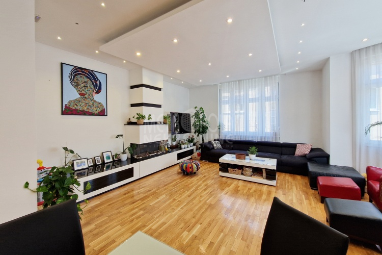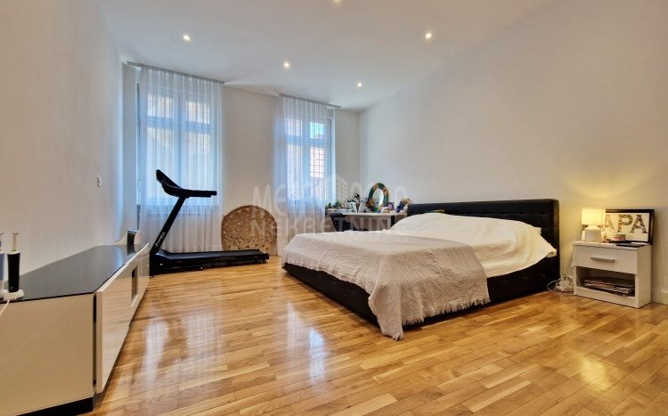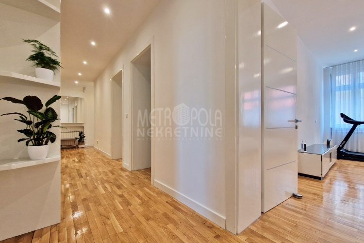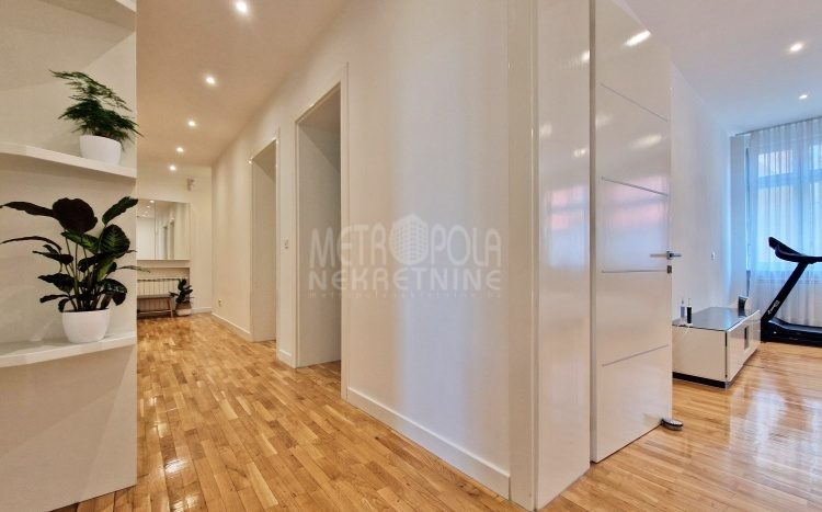 Iznajmljujemo vrlo lijep i komforan, kvalitetno uređen stan površine 130m2, koji se nalazi u jednom od najpoželjnijih rezidencijalnih naselja u centru grada, u ulici Josipa Vancaša. Karakteriše ga velika površina koja u kombinaciji sa visokim stropovima i velikim prozorskim otvorima pruža osjećaj komfora i ugodnog boravka. Stan ima vrlo funkcionalan i praktičan raspored prostorija i to na način da je 130m2 raspoređeno na veliki dnevni boravak sa kuhinjom i trpezarijom (open space concept), četiri spavaće sobe, dva kupatila i veliki hodnik sa ugradbenim plakarom površine nekoliko kvadrata. Trostrano je orjentisan (istok, jug, zapad) i nalazi se na drugom spratu stambene zgrade koja ima uredan i lijepo održavan haustor.