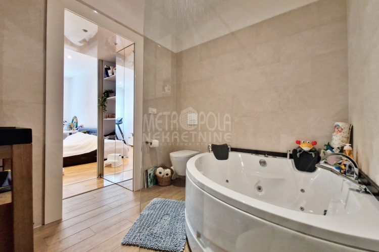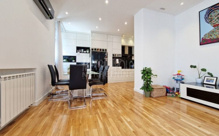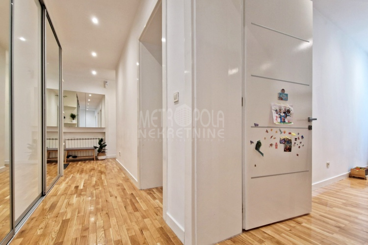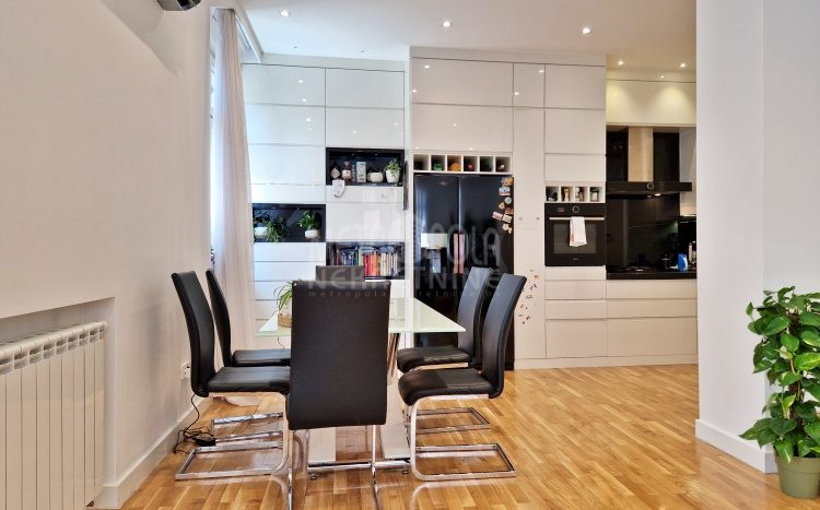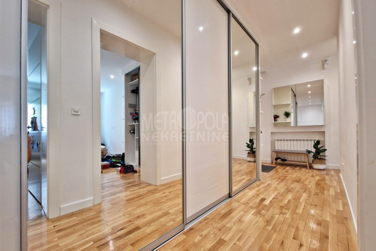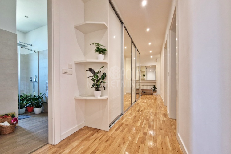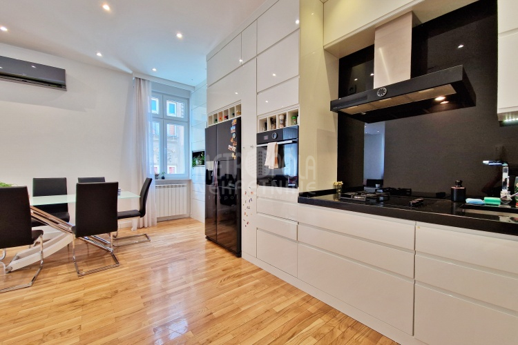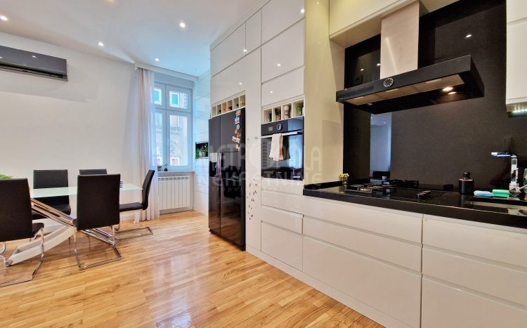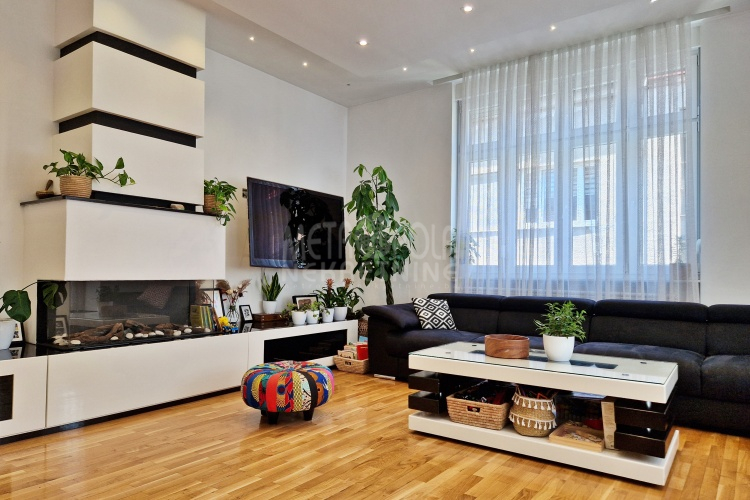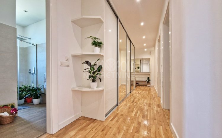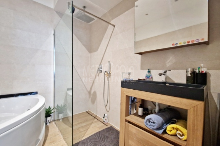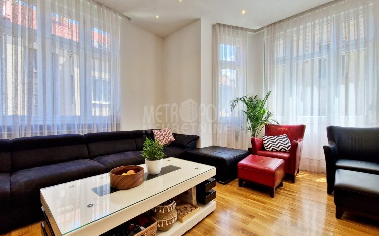 Iznajmljujemo vrlo lijep i komforan, kvalitetno uređen stan površine 130m2, koji se nalazi u jednom od najpoželjnijih rezidencijalnih naselja u centru grada, u ulici Josipa Vancaša. Karakteriše ga velika površina koja u kombinaciji sa visokim stropovima i velikim prozorskim otvorima pruža osjećaj komfora i ugodnog boravka. Stan ima vrlo funkcionalan i praktičan raspored prostorija i to na način da je 130m2 raspoređeno na veliki dnevni boravak sa kuhinjom i trpezarijom (open space concept), četiri spavaće sobe, dva kupatila i veliki hodnik sa ugradbenim plakarom površine nekoliko kvadrata. Trostrano je orjentisan (istok, jug, zapad) i nalazi se na drugom spratu stambene zgrade koja ima uredan i lijepo održavan haustor.