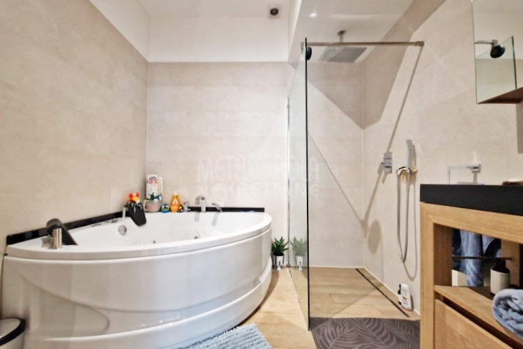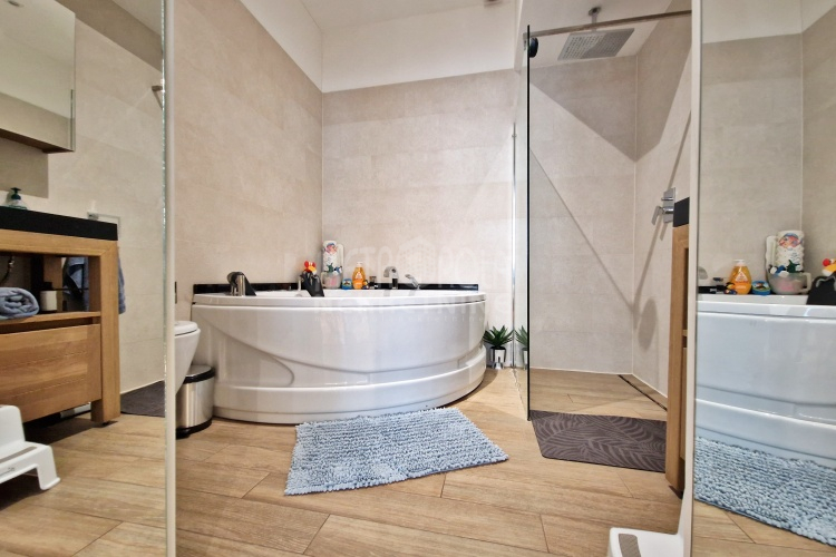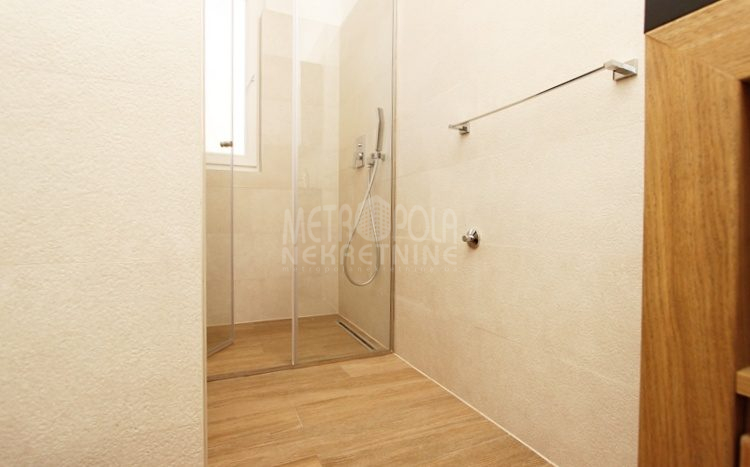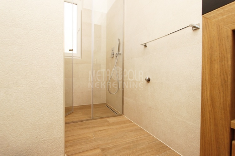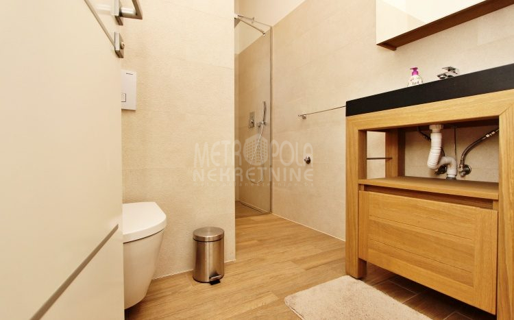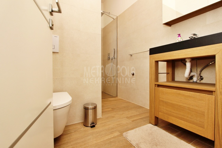 Plinsko etažno grijanje. Aluminijski radijatori. Visokokvalitetna vanjska PVC stolarija i unutrašnja drvena stolarija. Parket i keramičke pločice na podovima. Klima uređaj. Kamin u dnvenom boravku. Blinda ulazna vrata. Interfon.