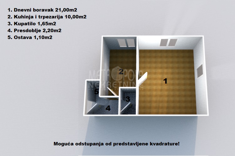 Prodajemo jednosoban stan povšrine 35m2, koji se nalazi u pizemlju manjeg stambenog objekta u naselju Bistrik. Stan se sastoji od velikog, dvostrano orjentisanog dnevnog boravka, komforne kuhinje sa trpezarijom, manjeg kupatila, predsoblja i ostave. Ima razvedeno plinsko etažno grijanje. Objekat u kojem se nalazi ima vlastito dvorište, u kojem se nalaze ostave (šupe) koje koriste stanari zgrade.