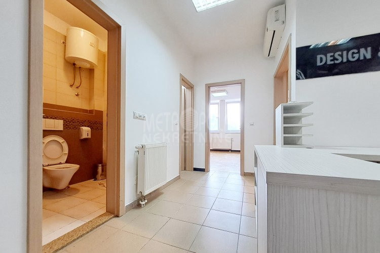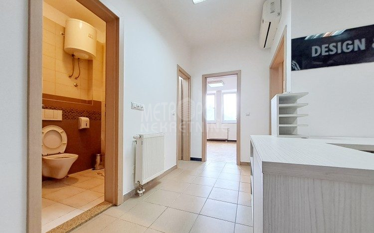 Iznajmljujemo moderno uređen poslovni prostor kancelarijskog tipa, površine 64m2, a koji se nalazi na prvom spratu stambeno-poslovnog objekta u naselju Dolac Malta. Prostor se sastoji od dvije velike istočno orijentisane prostorije, predsoblja sa čajnom kuhinjom, kupatila, ostave i ustakljene lođe. Vrlo je svijetao, prozračan i ugodan za boravak. Objekat u kojem se prostor nalazi je pokriven videonadzorom u haustoru zgrade, dok je sama zgrada ispunjena raznim sadržajima zbog čega je prikladna za obavljanje raznovrsnih djelatnosti.