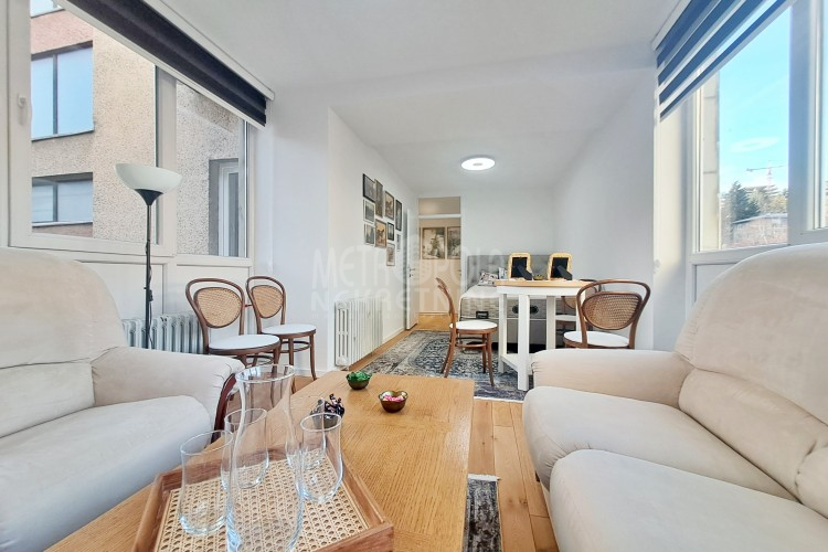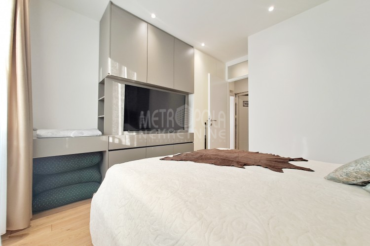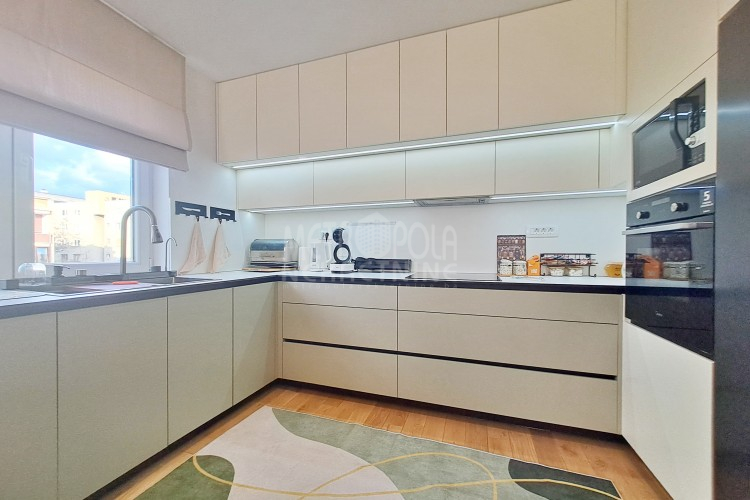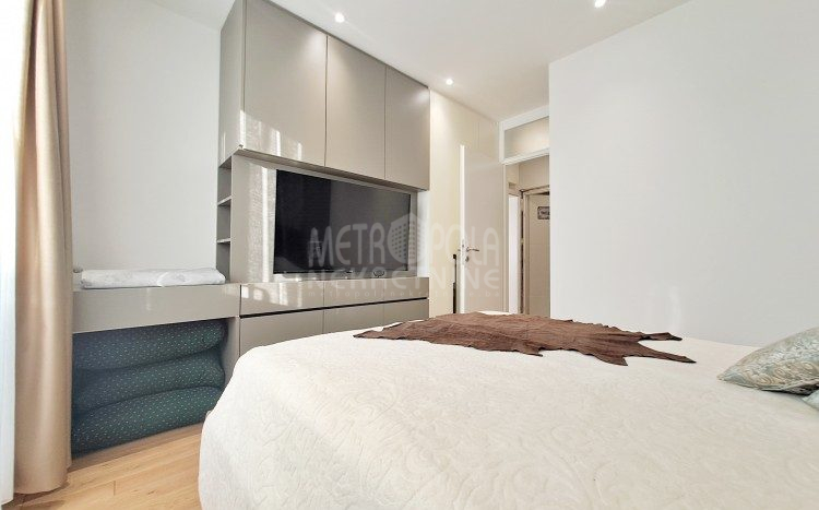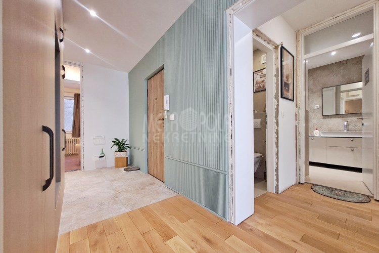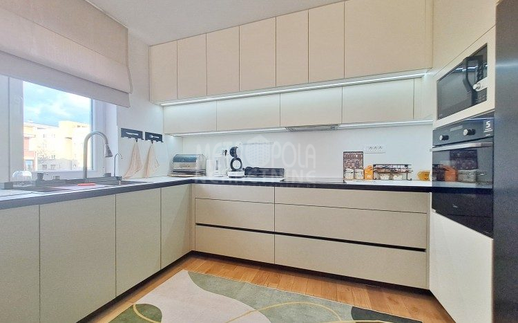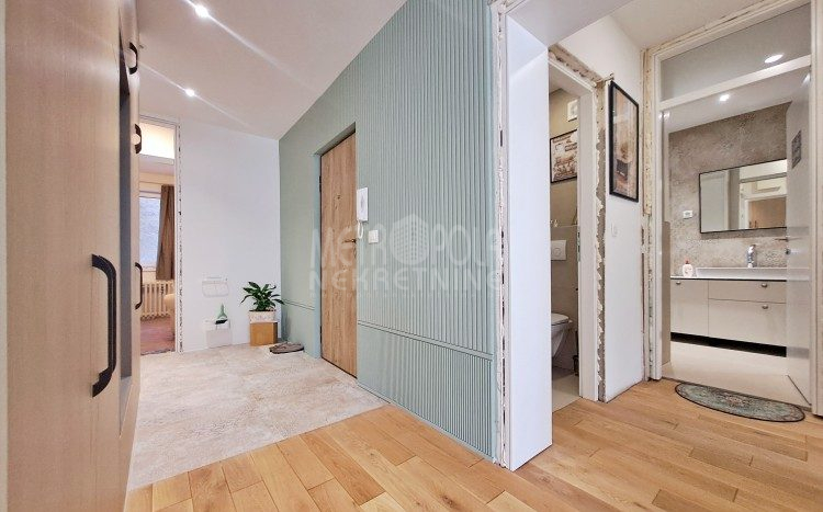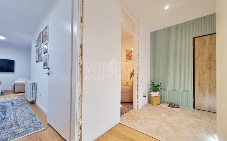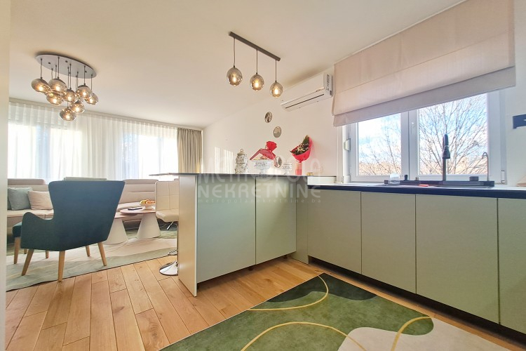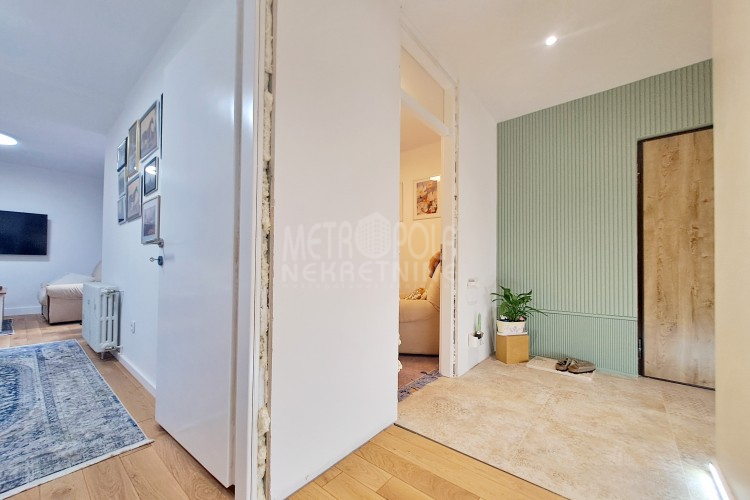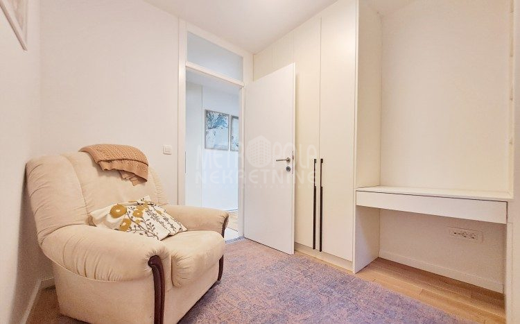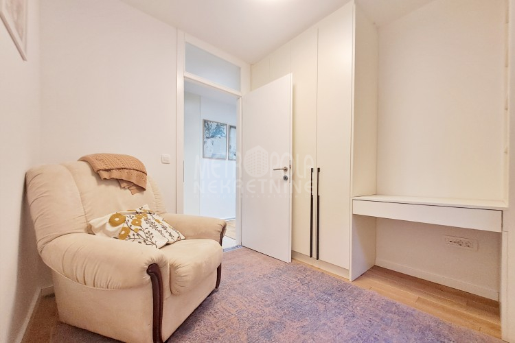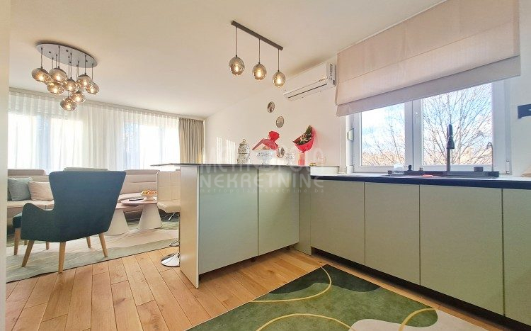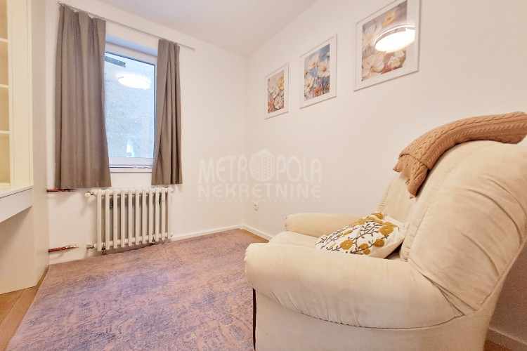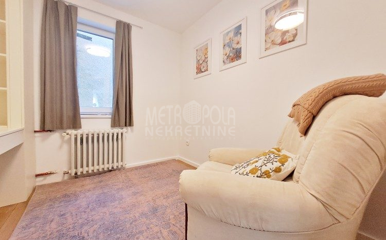 Centralno gradsko grijanje. Parket i keramičke pločice na podovima. Vanjska PVC stolarija. Ustakljena lođa. Unutrašnja drvena stolarija. Klima uređaj. Blinda ulazna vrata. Lift. Besplatni javni parking.