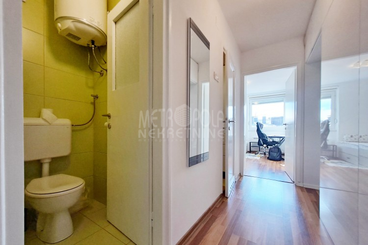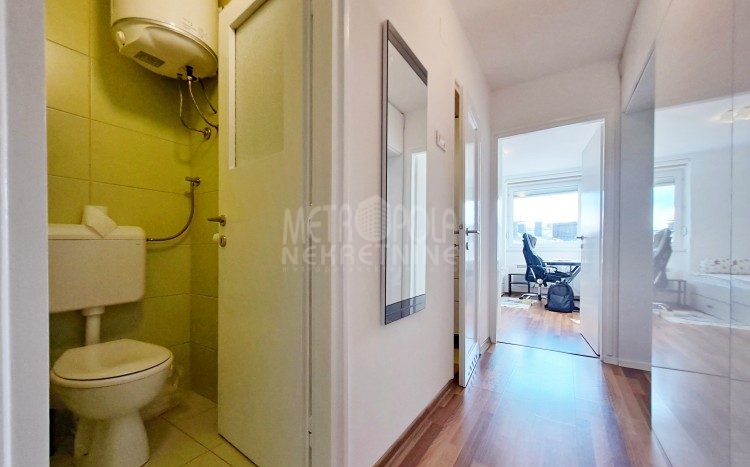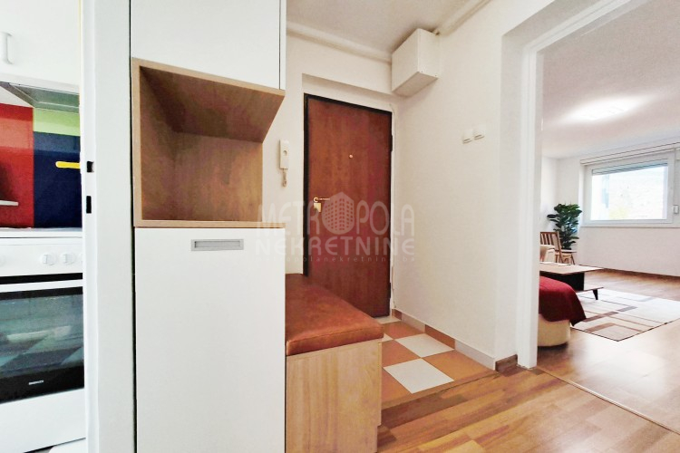 Iznajmljujemo opremljen trosoban stan sa dva balkona, površine 63m2. Stan se nalazi na prvom spratu stambeno-poslov