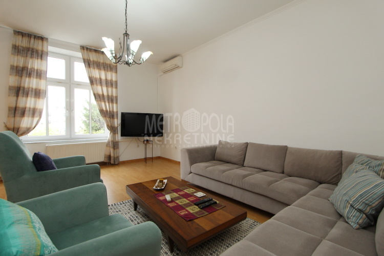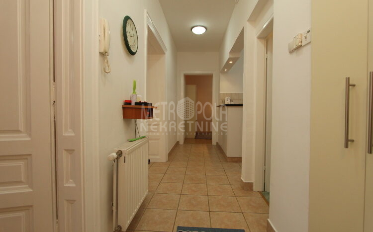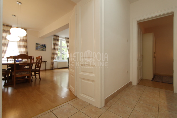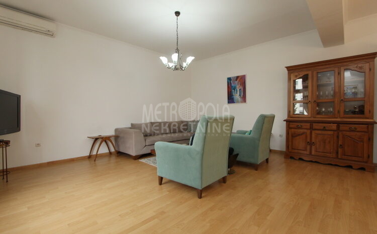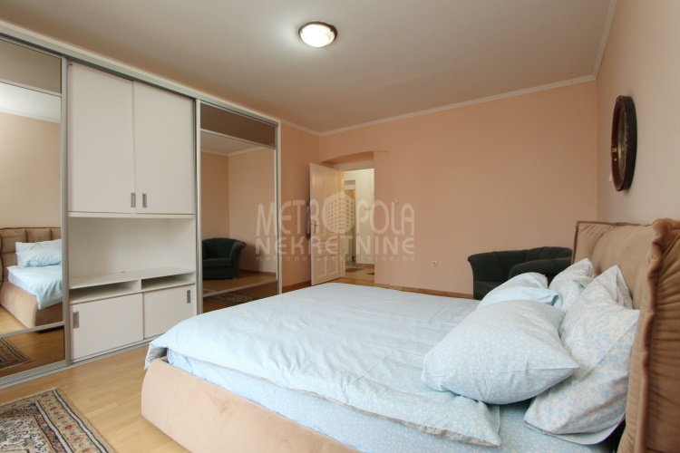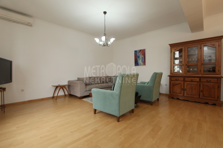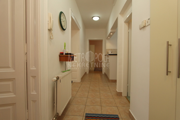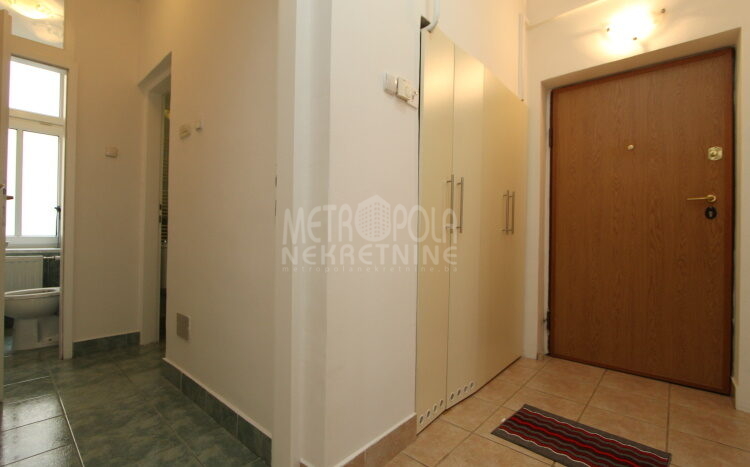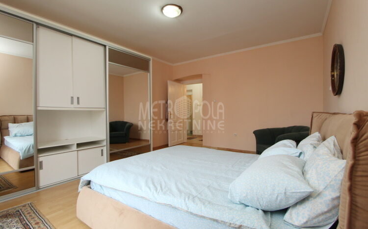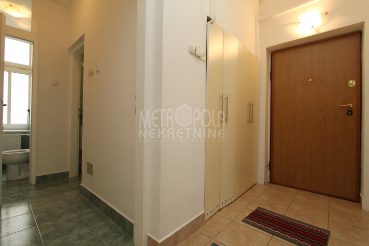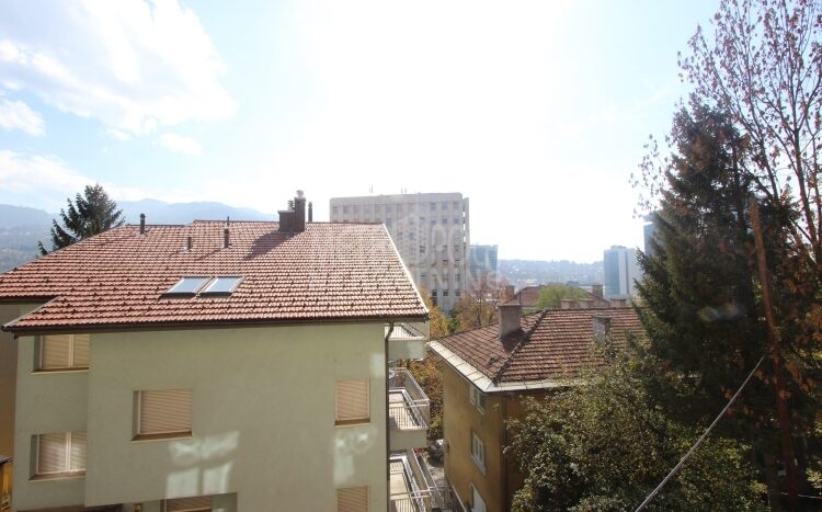 Iznajmljujemo potpuno namješten i komforan trosoban stan, površine 97m2. Stan se nalazi na prvom spratu privatnog stambenog objekta, u ul. Avde Jabučice, sarajevsko naselje Marijin Dvor, općina Centar. Predmetna nekretnina se sastoji od prostranog dnevnog boravka sa trpezarijom (cca. 37m2), predsoblja iz kojeg je omogućen pristup u obje spavaće sobe i kuhinju, te degažmana koji vodi do kupatila i odvojenog toaleta. Zahvaljujući južnoj orjentaciji, stan je optimalno osunčan tokom većeg dijela dana. Cjelokupno je renoviran tokom 2008. godine, a namještaj u stanu je nov. U stanu je razvedeno i kombinovano grijanje, primarno je plinsko etažno, a alternativa je grijanje na električnu energiju.
