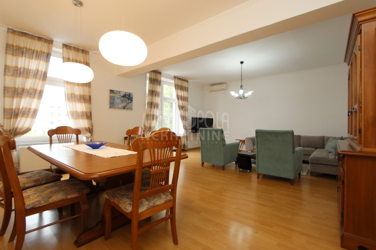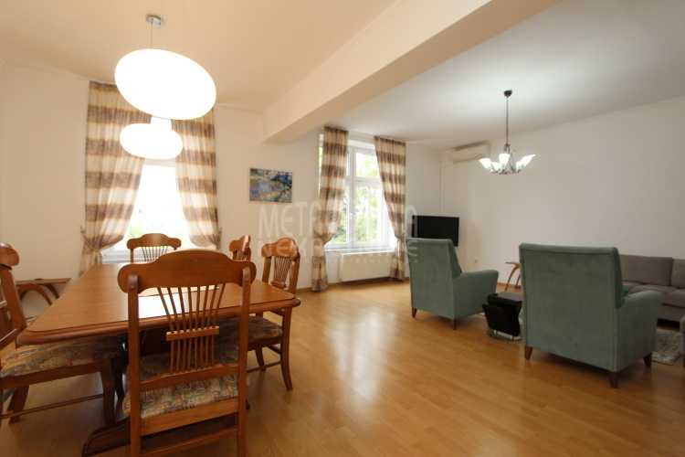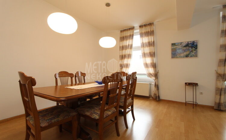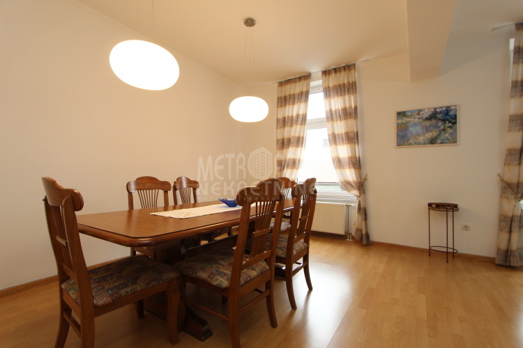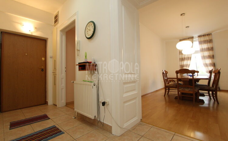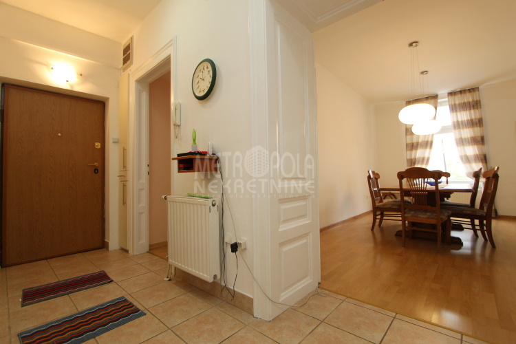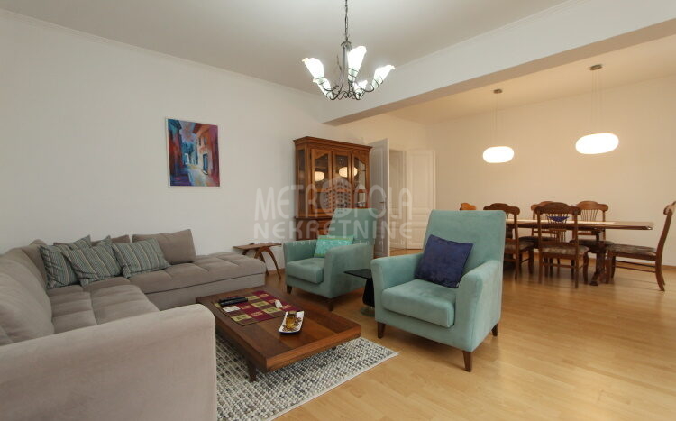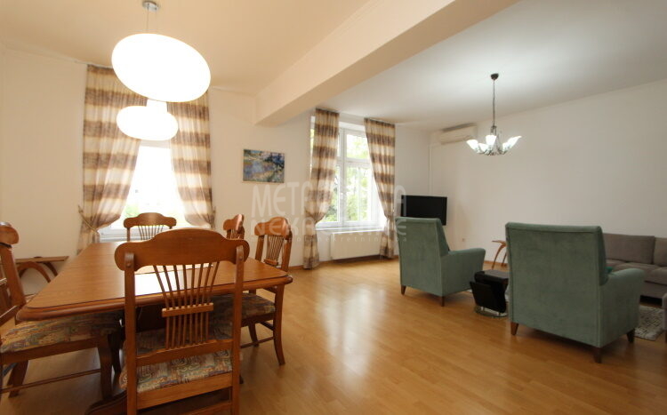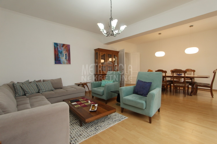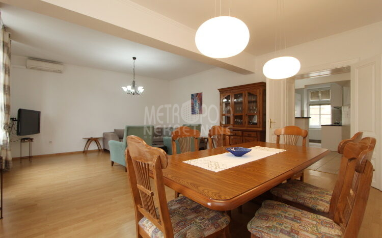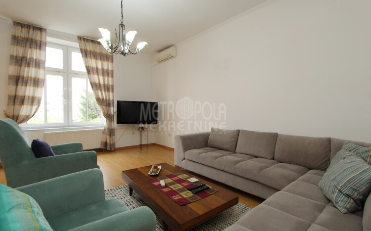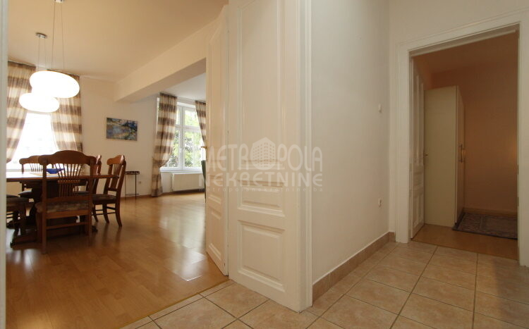 Iznajmljujemo potpuno namješten i komforan trosoban stan, površine 97m2. Stan se nalazi na prvom spratu privatnog stambenog objekta, u ul. Avde Jabučice, sarajevsko naselje Marijin Dvor, općina Centar. Predmetna nekretnina se sastoji od prostranog dnevnog boravka sa trpezarijom (cca. 37m2), predsoblja iz kojeg je omogućen pristup u obje spavaće sobe i kuhinju, te degažmana koji vodi do kupatila i odvojenog toaleta. Zahvaljujući južnoj orjentaciji, stan je optimalno osunčan tokom većeg dijela dana. Cjelokupno je renoviran tokom 2008. godine, a namještaj u stanu je nov. U stanu je razvedeno i kombinovano grijanje, primarno je plinsko etažno, a alternativa je grijanje na električnu energiju.