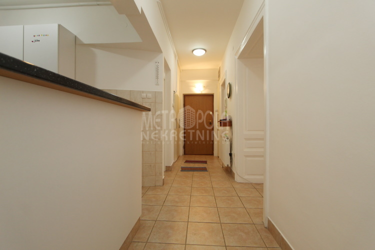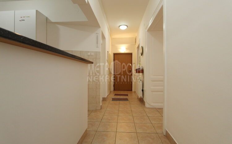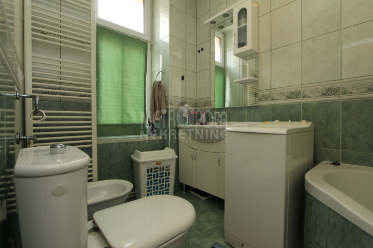 Plinsko etažno grijanje. Grijanje na električnu energiju. Vanjska PVC stolarija. Unutrašnja drvena stolarija. Keramičke pločice u predsoblju, kuhinji, degažmanu, kupatilu i toaletu. Laminat u sobama. Klima uređaj. Namješten. Internet. CATV. Telefon. Interfon. Blinda ulazna vrata. Balkon. Podrum. Garaža.