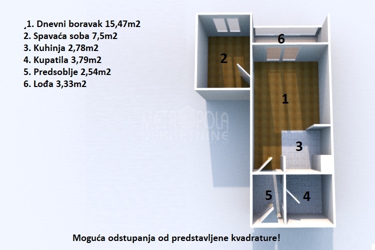 Iznajmljujemo namješten, manji, dvosoban stan, vrlo praktičnog rasporeda prostorija, površine 35m2. Stan se nalazi na devetom spratu stambeno-poslovne zgrade izgrađene u sklopu kompleksa u „Nova Otoka“, u naselju Otoka. Sastoji se od dnevnog boravka sa kuhinjom, spavaće sobe, kupatila, predsoblja i lođe. Zbog male kvadrature koja u kombinaciji sa odlično mtopolotnom izolacijom zgrade proizvodi vrlo mali iznos mjesečnih komunlanih obaveza, te vrlo praktičnog rasporeda prostorija, ovaj stan možemo nazvati izuzetno ekonomičnim za upotrebu.