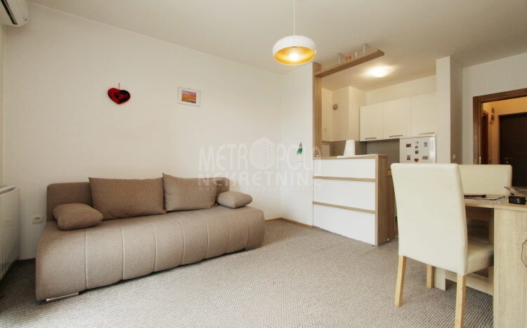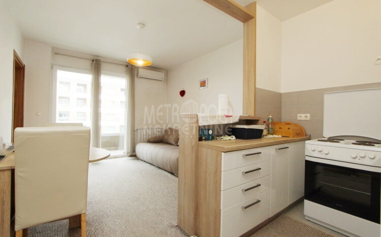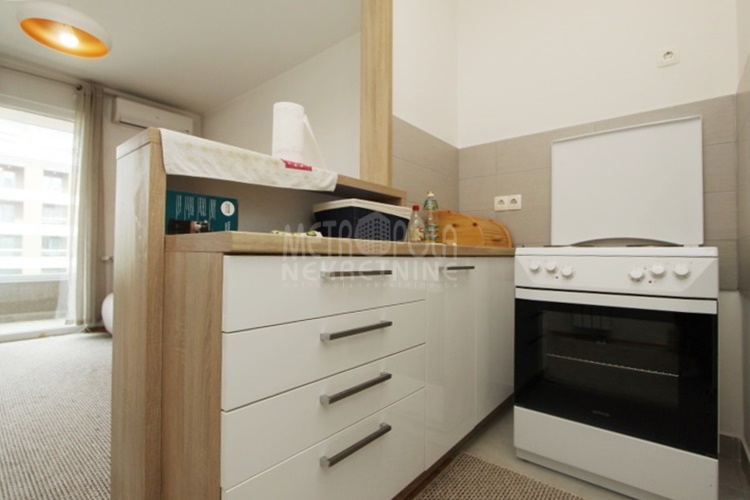 Iznajmljujemo potpuno opremljenu garsonjeru površine 31m2. Nalazi se na jedanaestom spratu stambeno-poslovne zgrade