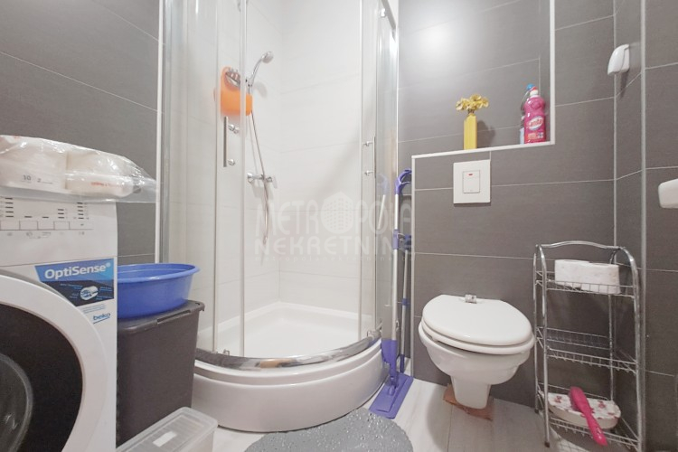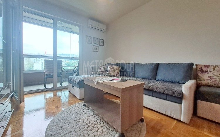 Iznajmljujemo potpuno opremljenu garsonjeru površine 31m2. Nalazi se na jedanaestom spratu stambeno-poslovne zgrade