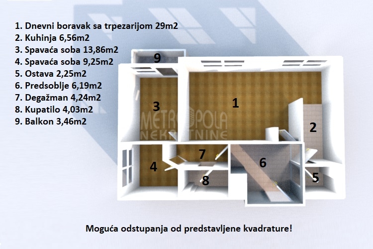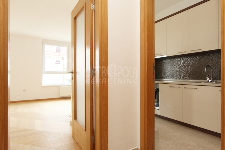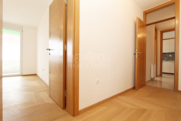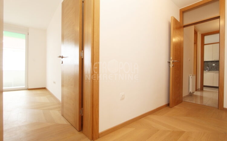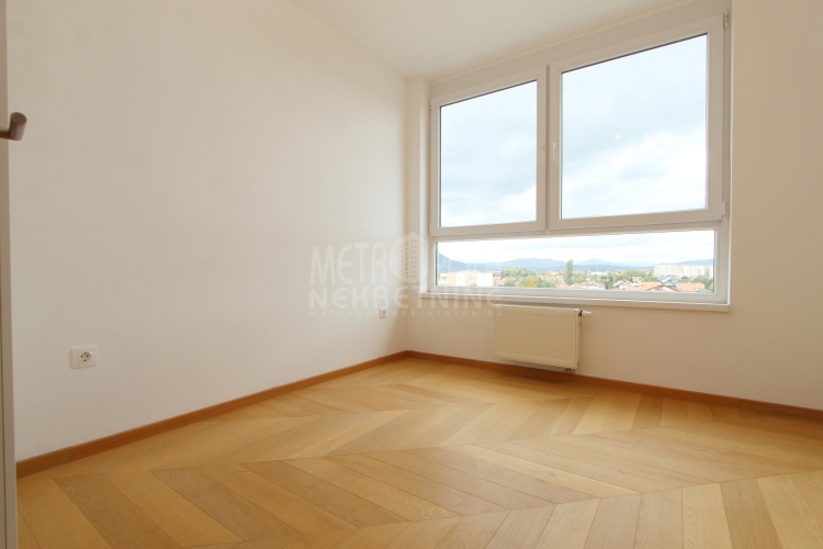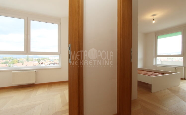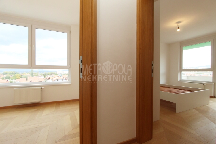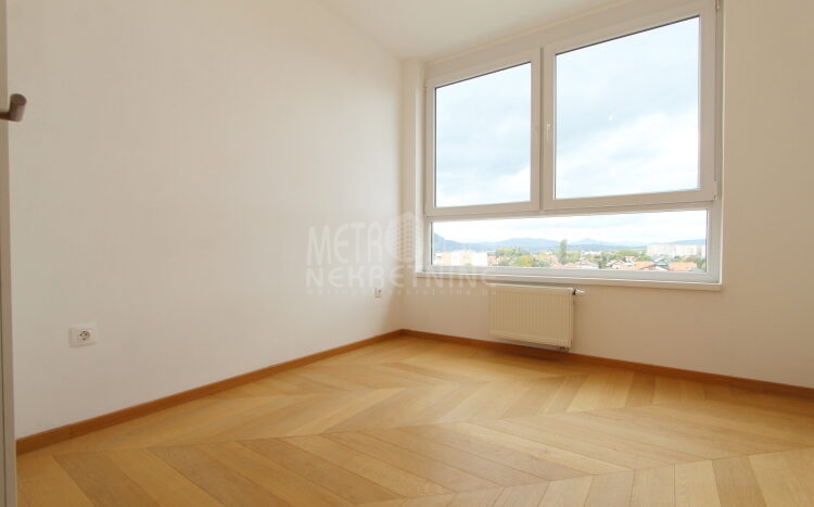 Prodajemo trosoban stan površine 79,44m2 i garažno mjesto površine cca. 17m2. Stan se nalazi na šestom spratu stambene zgrade izgrađene 2016 godine u ulici Branislava Nušića, naselje Dobrinja V. Sastoji se od dnevnog boravka sa trpezarijom, kuhinje, dvije spavaće, predsoblja, degažmana, ostave, kupatila i balkona. Zbog dvostrane orjentacije, odlične dispozicije prostorija, velikih prozorskih otvora i svjietle stolarije svijetao je i prozračan tokom većeg dijela dana te izuzetno ugodan za boravak. Pored spratnosti, vrlo lijepe lokacije, jedna od najvećih prednosti ove nekretnine je svakako reprezentativan objekat novije gradnje u kojem se stan nalazi. Bitno je naglasiti da predmetni stan nikada nije useljen, ali da je trenutni vlasnik samostalno ugrađivao hrastov parket, unutrašnju stolariju i keramičke pločice u kuhinji, kupatilu i ostavi. Tokom 2019 godine je u stan ugrađena nova kuhinja i plakari koji potencijalnom kupcu ostaju gratis. Napominjenmo i to da je haustor zgrade izrazito čist i uredan.