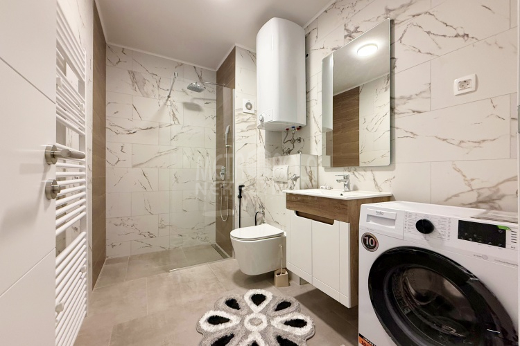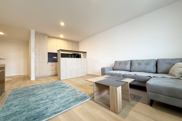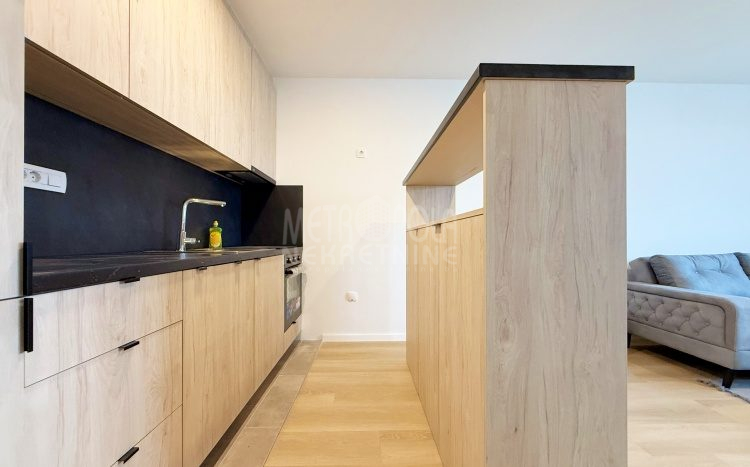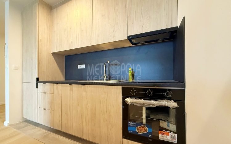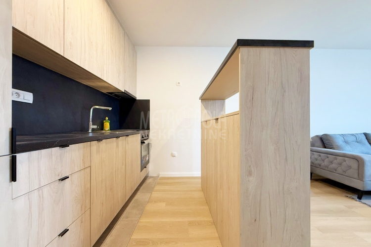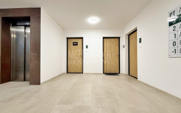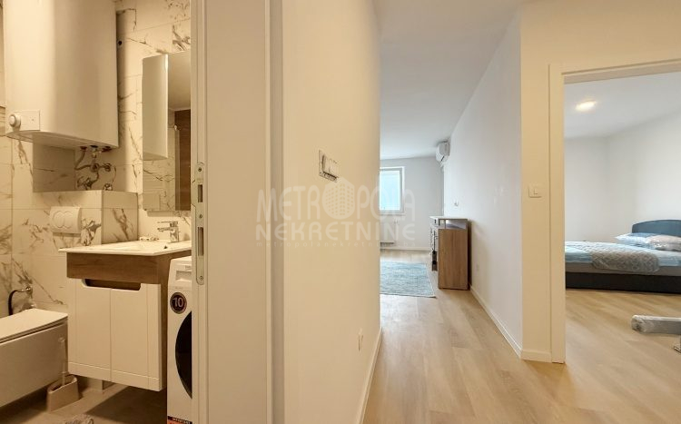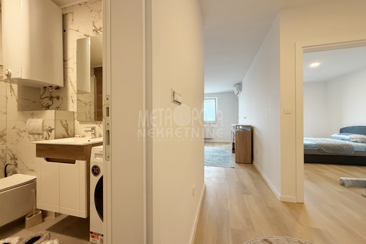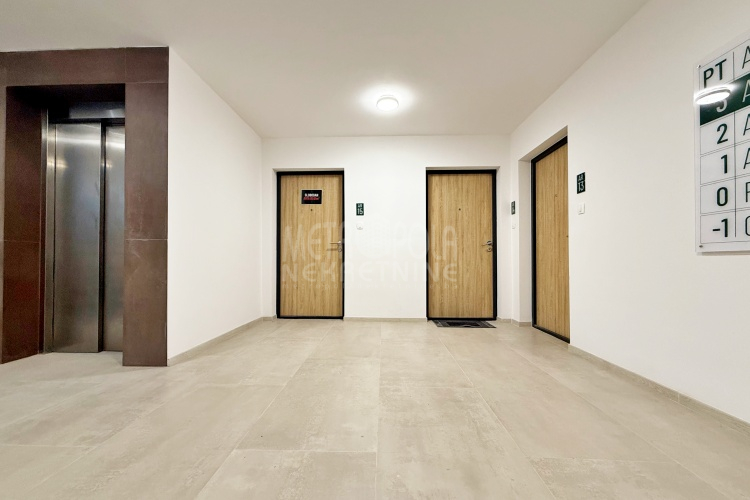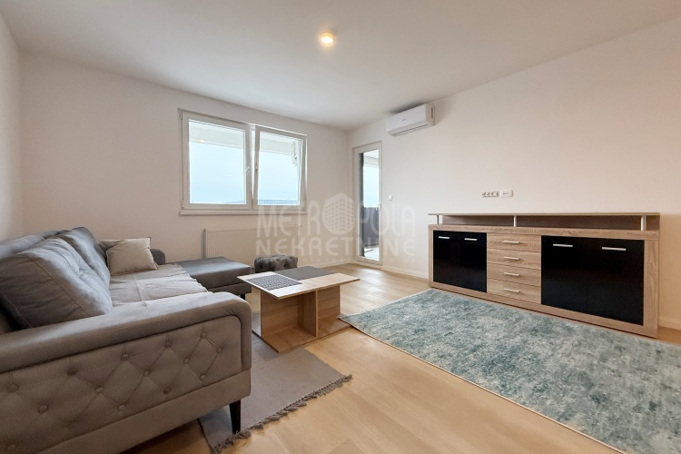 Iznajmljujemo potpuno nov, nekorišten dvosoban stan, površine 63m2. Stan se nalazi na trećem spratu zgrade izgrađene u naselju Dobrinja. Stan nije korišten i opremljen je potpuno novim namještajem. Sastoji se od komfornog dnevnog boravka sa kuhinjom, spavaće sobe, kupatila, velikog predsoblja i lođe. Zapadno je orjentisan pa je ugodno osunčan u popodnevnim satima. Zgrada u kojoj se nalazi nije tehnički primljena od strane nadležnih organa, ali je samoinicijativno useljena od strane kupaca, zbog čega ugrađeni lift još uvijek nije pušten u funkciju. U suterenu objekta se nalazi pripadajuće parking mjesto koje je uračunato u cijenu zakupa.