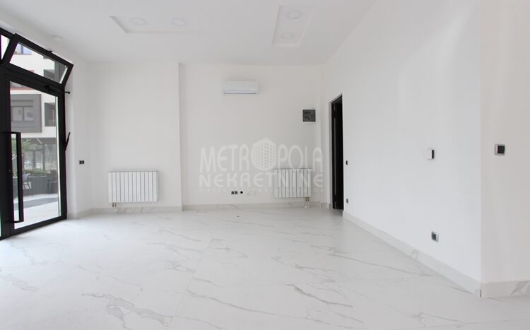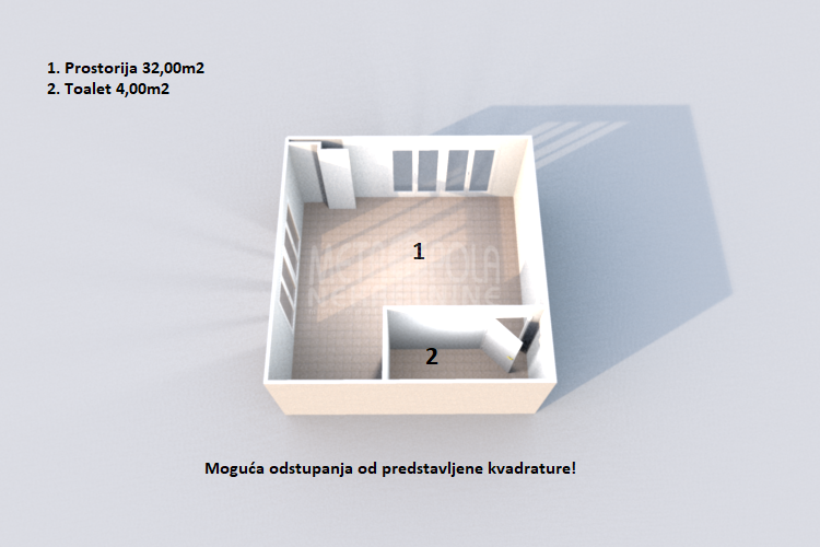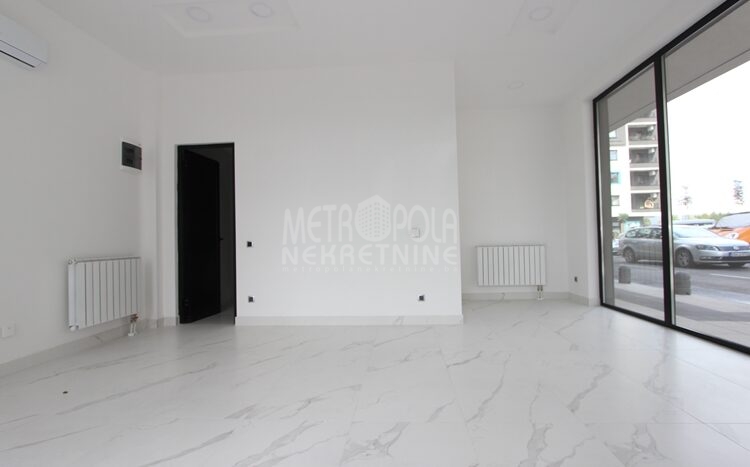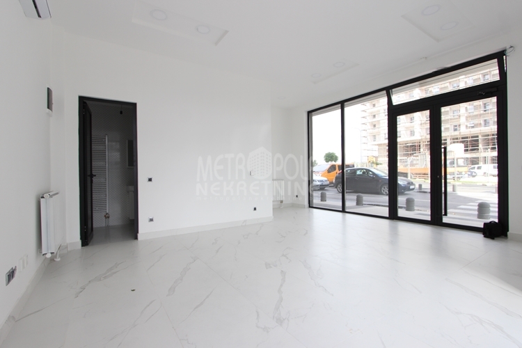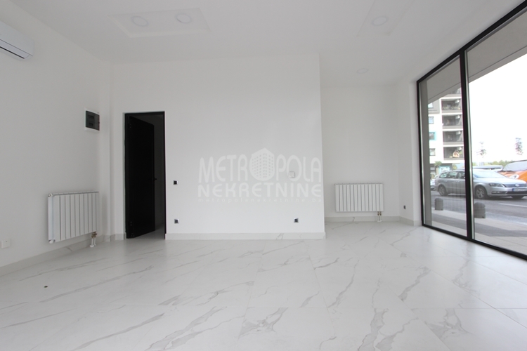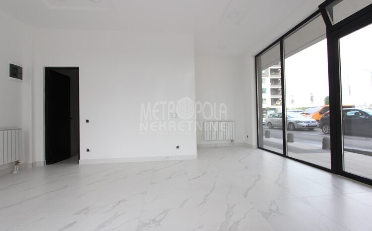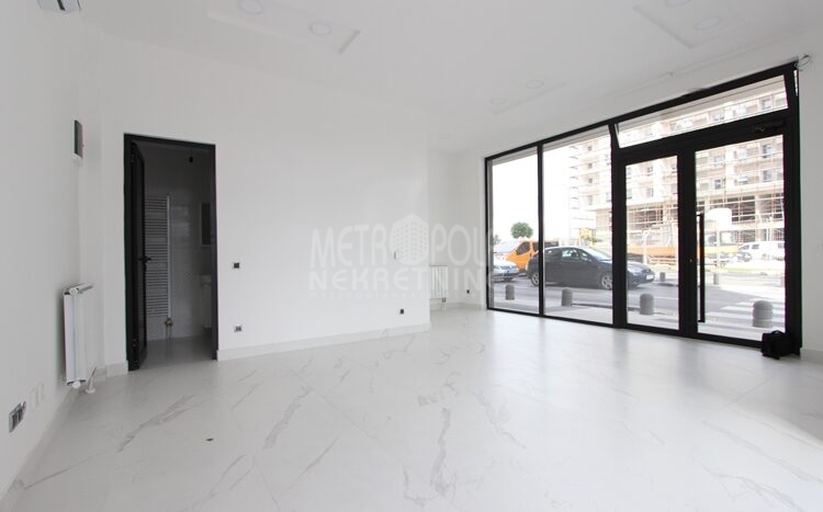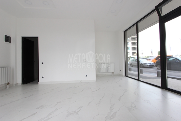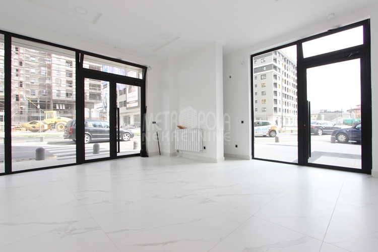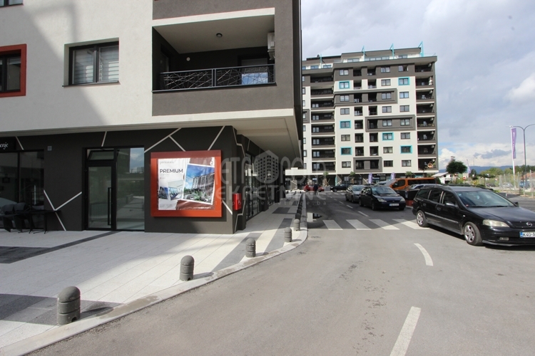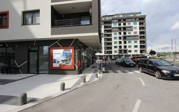Iznajmljujemo nov, odlično pozicioniran, višenamjenski poslovni prostor površine 36m2. Prostor se nalazi na kraju zgrade izgrađene u središtu kompleksa, dvostrano je orjentisan i ima dva zasebna ulaza. Dužinom oba vanjska zida postavljeni su veliki portali koji pružaju obilje dnevne svjetlosti, što ga u kombinaciji sa svim prethodno navedenim čini posebno pogodnim za djelatnosti koje zahtijevaju izlog. Pozicija i spratnost mu omogućuju dobru uočljivost i pristupačnost sa glavne ceste ali i iz naselja.