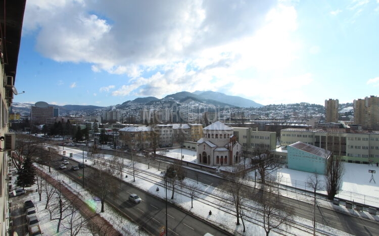 Iznajmljujemo poluopremljen dvosoban stan, površine 63m2, koji se nalazi preko puta Treće gimnazije, u naselju Pofalići. Stan se nalazi na šestom spratu stambene zgrade, koja ukupno broji osam spratova i ima lift, a izgrađena je šezdesetih godina u ulici Zmaja od Bosne, uz glavnu gradsku saobraćajnicu. Stan je tokom 2017 godine kompletno renoviran. Stan je dvostrano orjentisan sa pogledom orjentisanim južno na Gimnaziju i sjeverno na naselje. Izuzetno je svijetao i prozračan, te ugodan za boravak. Stan posjeduje dva ustakljena balkona. Haustor zgrade je veoma uredan i redovno se održava.