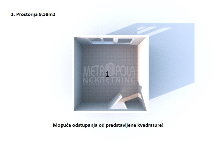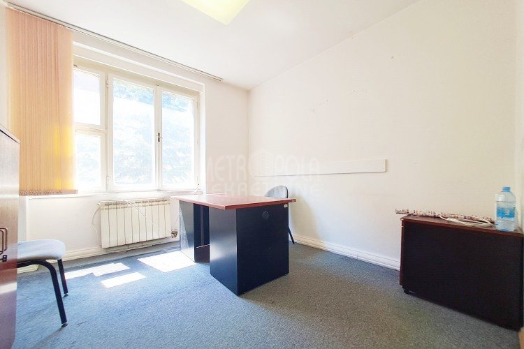 Iznajmljujemo kancelariju površine 9,38m2, koja se nalazi na drugom spratu poslovnog objekta u naselju Čobanija, u centru grada. Unutar ovog objekta je moguće unajmiti i dodatne kancearije i to od 9m2 do 60m2. Kancelarije se nalaze na prvoj, drugoj i četvrtoj etaži poslovne zgrade u ulici Hamdije Kreševljakovića, u sarajevskom naselju Čobanija. Moguće ih je unajmiti parcijalno ili više kancelarija zajedno u zavisnosti od potreba budućih zakupaca. Kancelarije nemaju mokri čvor, ali svaka etaža ima toalet dostupan svim zakupcima sa etaže. Za buduće zakupce, posebnu pogodnost predstavlja što se na hodnike, toalete i druge zajedničke prostorije ne obračunavaju naknade, odnosno potencijalni zakupac plaća samo površinu zakupljene kancelarije i minimalne troškove komunalnih obaveza poput vode i grijanja, dok npr. održavanje zgrade i zajedničkih prostorija pada na teret zakupodavca. Lokacija, sam objekat, te površina kancelarija je odlična za novoosnovane kompanije ili one u procesu osnivanja, kao i već razvijene uredske djelatnosti kojima je uži centar grada presudan za kvalitetno obavljanje svakodnevnih poslovnih aktivnosti.