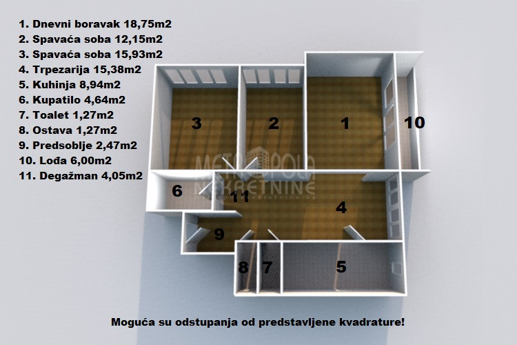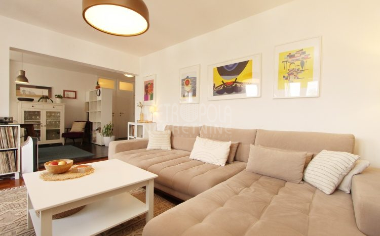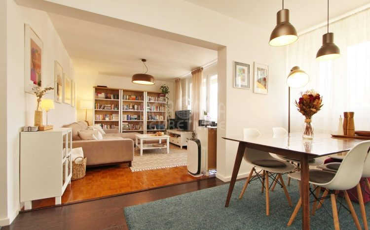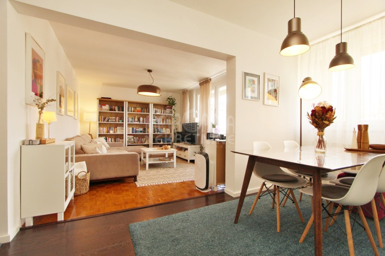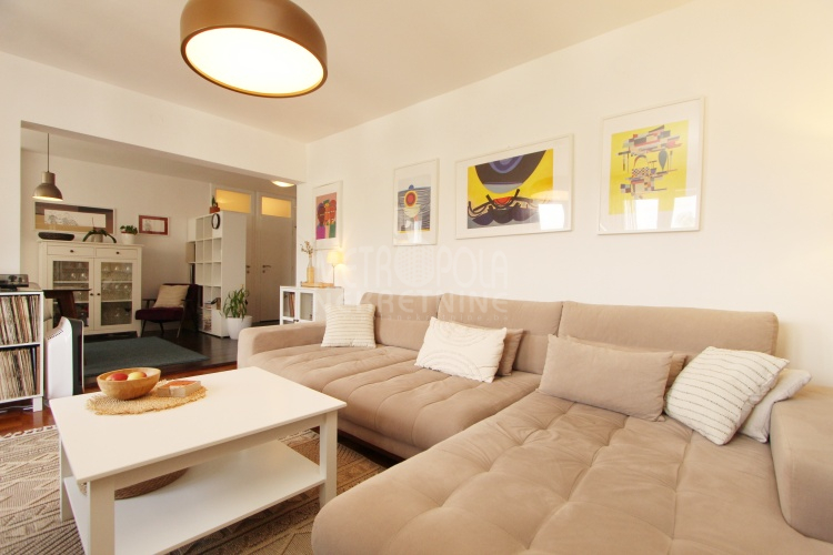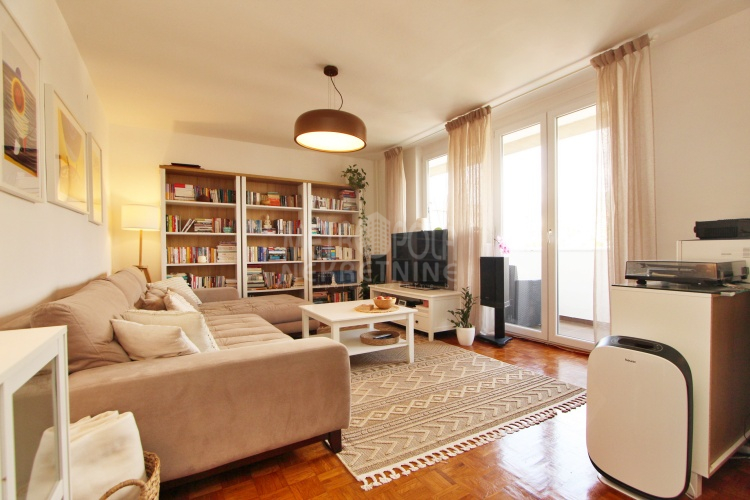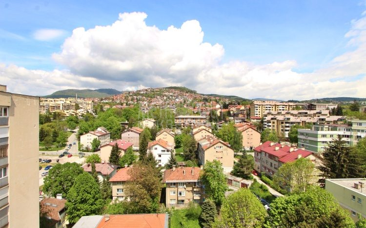 Iznajmljujemo izuzetno lijep, komforan i svijetao, trosoban stan uknjižene površine 84m2. Stan se nalazi na dvanaestom spratu dobro održavane stambene zgrade, izgrađene sedamdesetih godina u ulici Bolnička, u neposrednoj blizini Kliničkog centra u Sarajevu. Dvostrano je orjentisan (istok – zapad), te je izuzetno svijetao i prozračan, a čemu doprinose visoka spratnost, dvostrana orjentacija, veliki prozorski otvori, te svijetli tonovi korišteni prilikom uređenja. Posljednji put je renoviran tokom tokom 2014 godine kada su promijenjene vodovodne i elektro instalacije, pri čemu su kuhinja i kupatilo modernizovani. Istom prilikom potpuno je izmijenjena unutrašnja i vansjka stolarija, postavljen laminat u većem dijelu stana, te ugrađena blinda ulazna vrata. Kako se radi o posljednjem spratu, budući stanari mogu očekivati obilje prirodne svjetlosti u stanu, prozračnost i mirniji odnosno tihi relaksirajući ambijent. Zgrada u kojoj se stan nalazi se dobro održava, posjeduje dva funkcionalna lifta i manji parking prostor ispred ulaza.