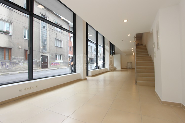 Iznajmljujemo izuzetan, dvoetažni poslovni prostor, koji se nalazi u prizemlju stambeno-poslovne zgrade izgrađene u
