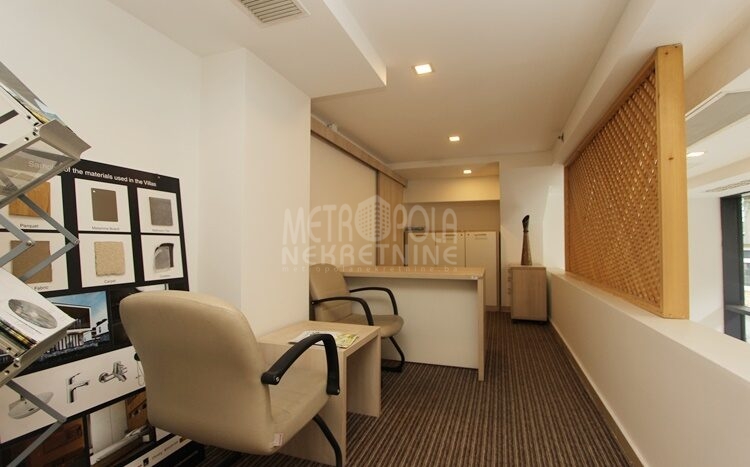 Iznajmljujemo po svim karakteristikama odličan poslovni prostor površine 147m2, a koji se nalazi u prizemlju poslovnog objekta na Čobaniji, Centar. Prostor je podijeljen u tri nivoa I to na način da se sastoji od suterenskog dijela, prizemnog dijela koji ima velike portale poredane cijelom dužinom južnog zida, te galerije koja također ima prirodnu svjetlost. Prostoru se pristupa direktno iz ulice Skenderija. Zbog reprezentativnog izgleda, portala i pozicije pogodan je za prodajne, izložbene i kancelarijske i druge djelatnosti. Pored perfektne lokacije koja ide u prilog mnogim djelatnostima, ogromna prednost ove nekretnine je ta što se nalazi u sklopu objekta, odnosno hotela Residence Inn by Marriott .