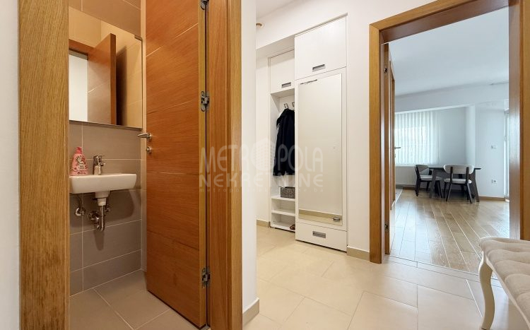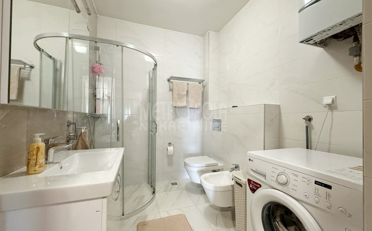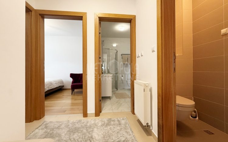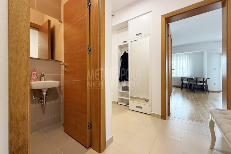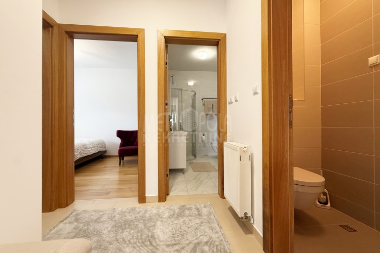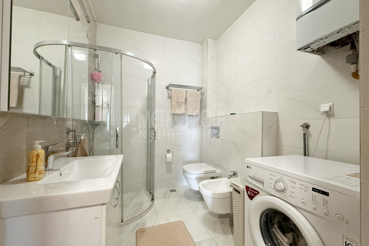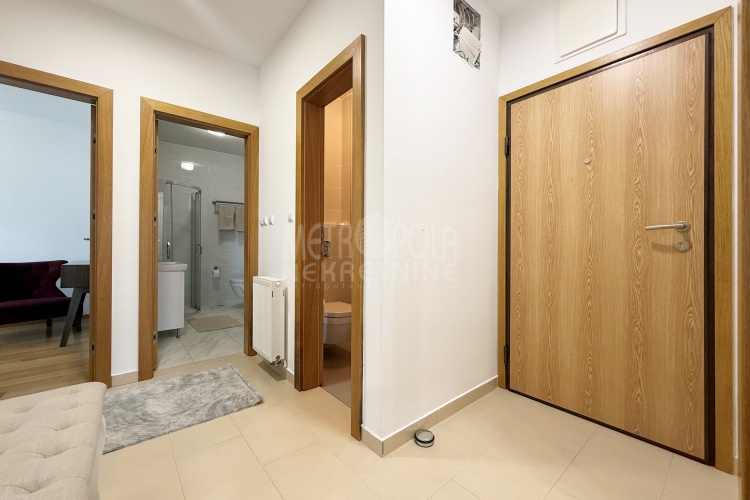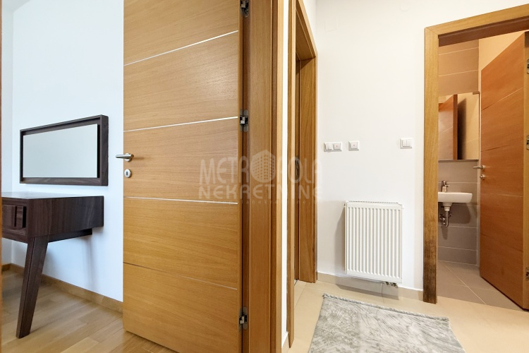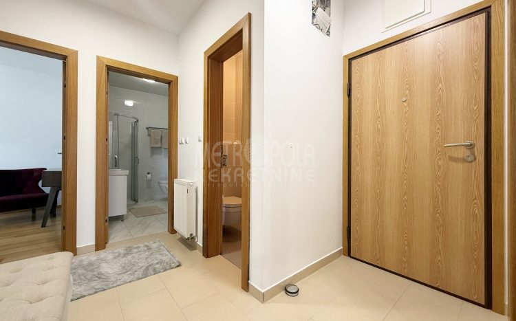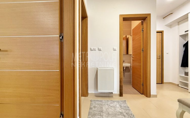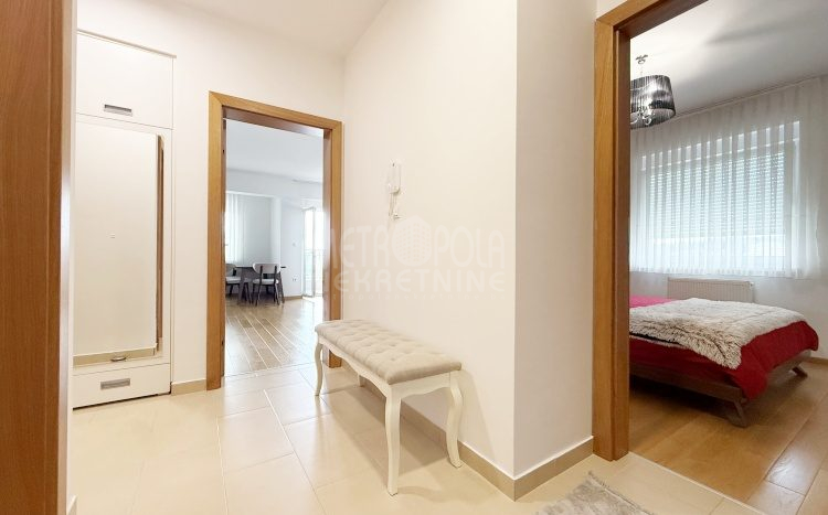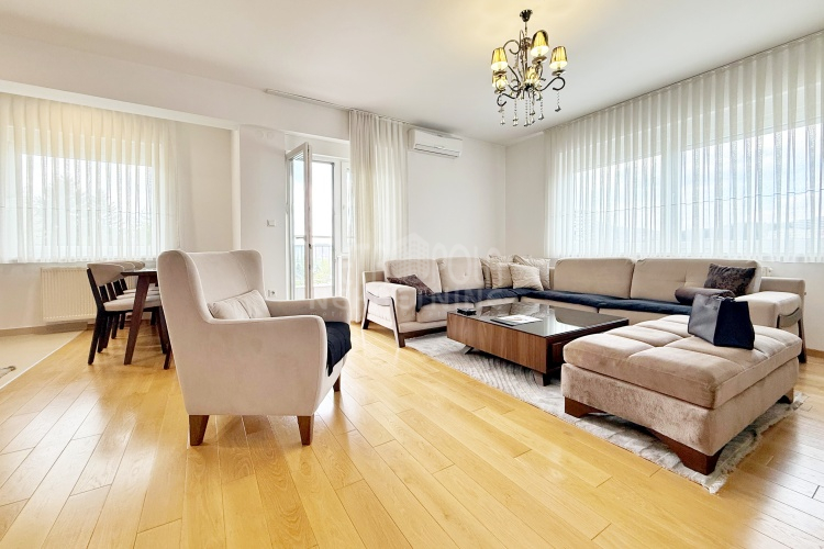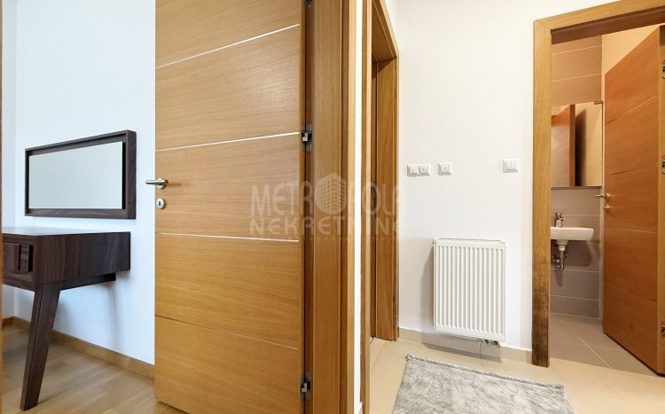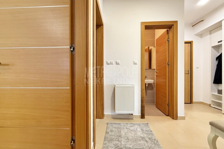 Plinsko etažno grijanje. Vanjska PVC stolarija. Unutrašnja drvena stolarija. Parket i keramičke pločice na podovima. Klima uređaj. Blinda ulazna vrata. Internet. CATV. Ostava u stanu. Lift. Garžno mjesto. Opremljeno namještajem.