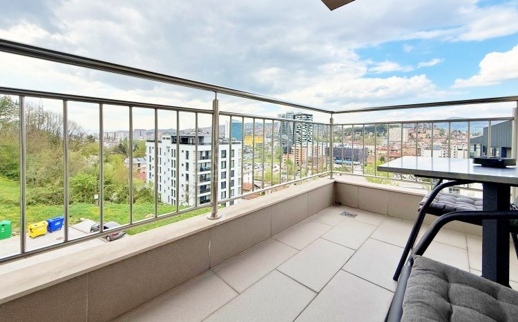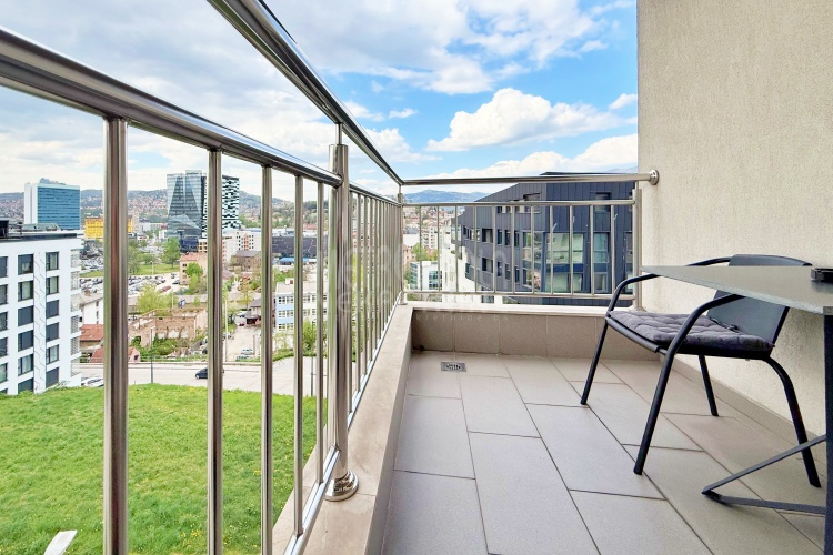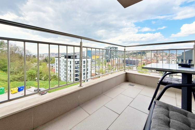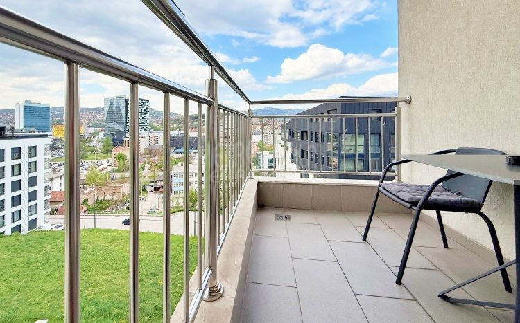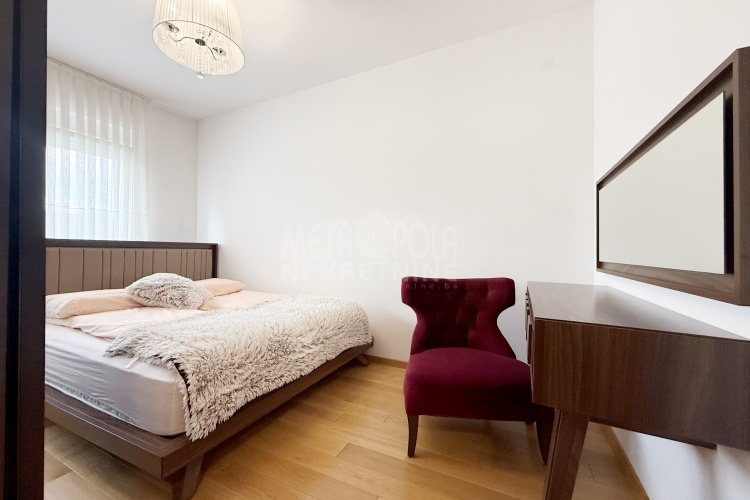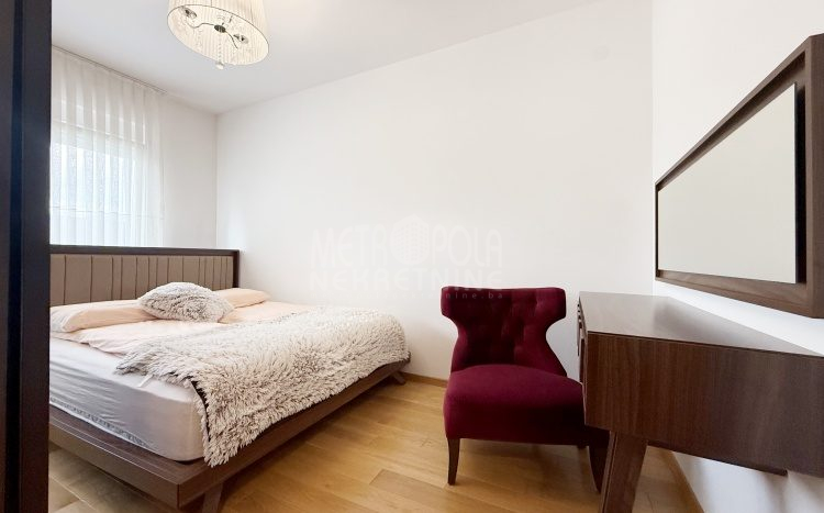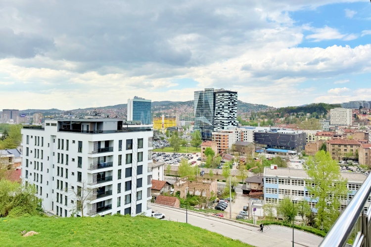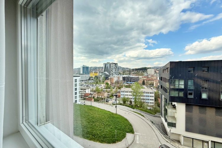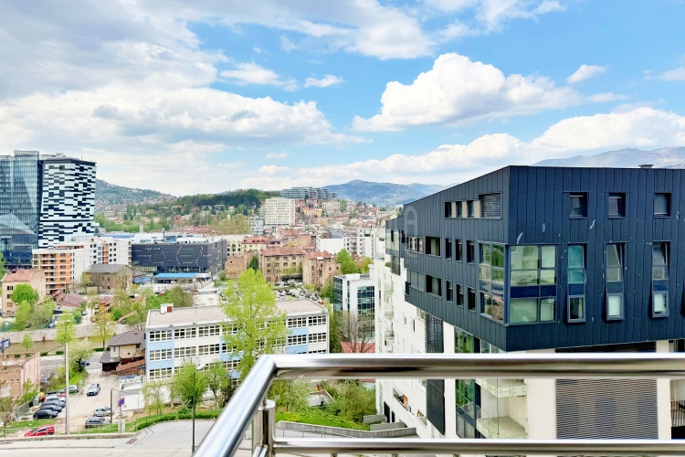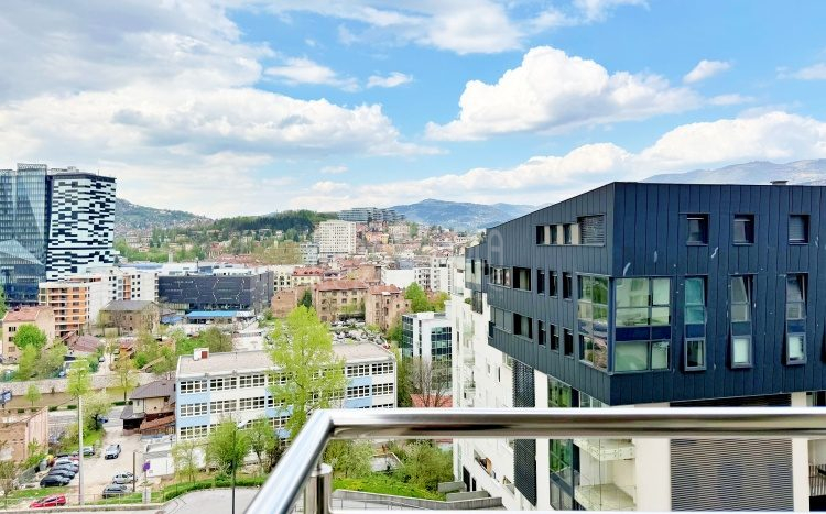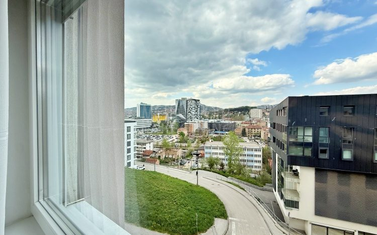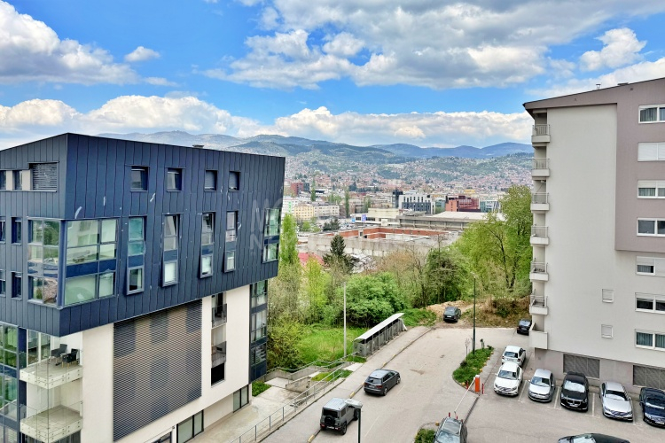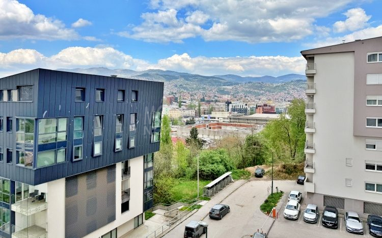 Iznajmljujemo vrlo lijep trosoban stan, površine 76m2, koji se nalazi na drugom spratu stambene zgrade novije gradnje, u naselju Skenderija. Stan je sjeverozapadno orjentisan, te ima izuzetno lijep, panoramski pogled na cijeli grad. Sastoji se od komfornog dnevnog boravka sa kuhinjom i trpezarijom, dvije spavaće sobe, kupatila, toaleta, ostave, predsoblja i balkona. U suterenu zgrade se nalazi garažno mjesto koje je uračunato u istaknutu cijenu zakupa. Stan se iznajmljuje opremljen namještajem kako je vidljivo u našoj galeriji fotografija.